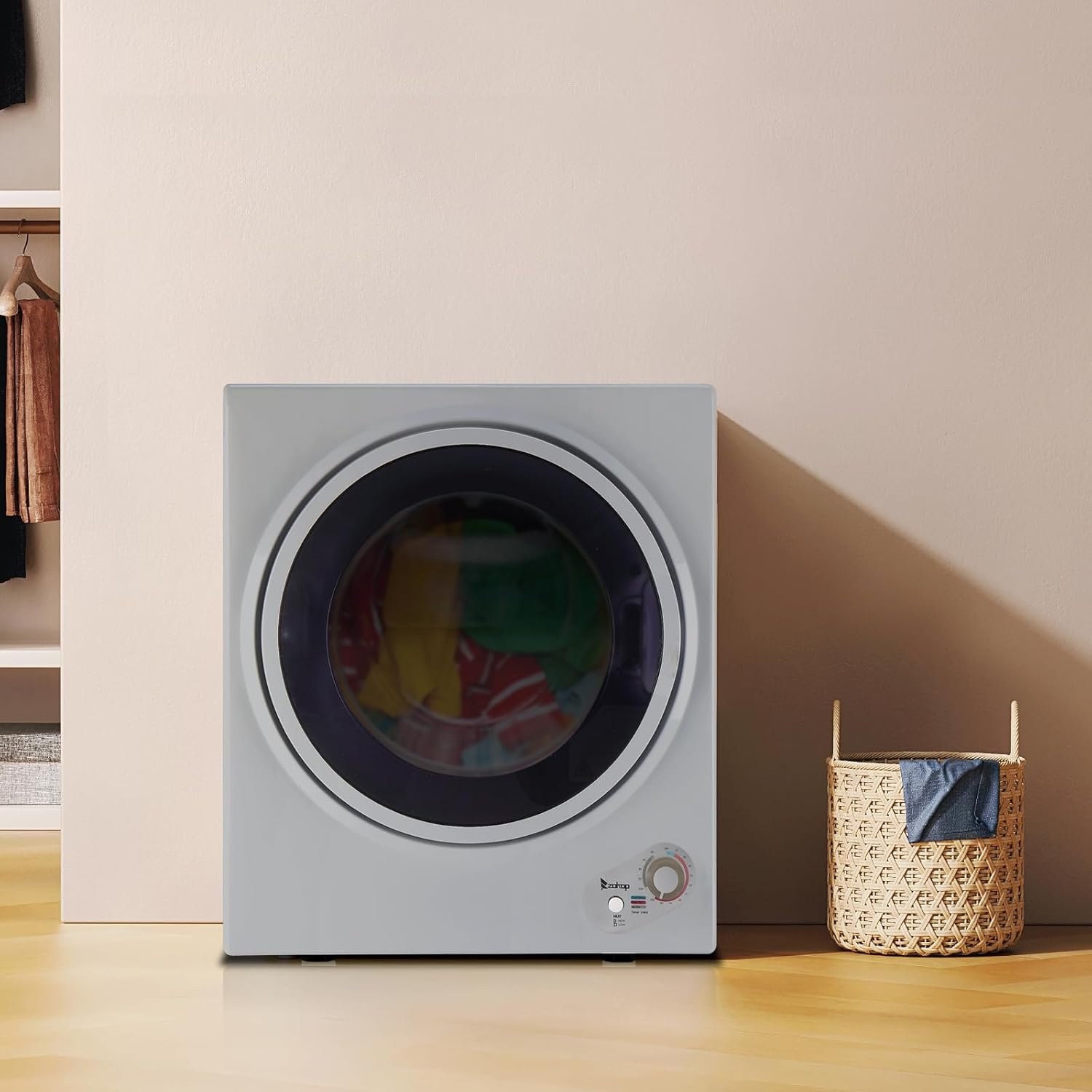 1.6 Cu. Ft. Compact Clothes Dryer, 850W Electric Dryers for Clothes, Electric Clothes Dryer with Stainless Steel Drumble