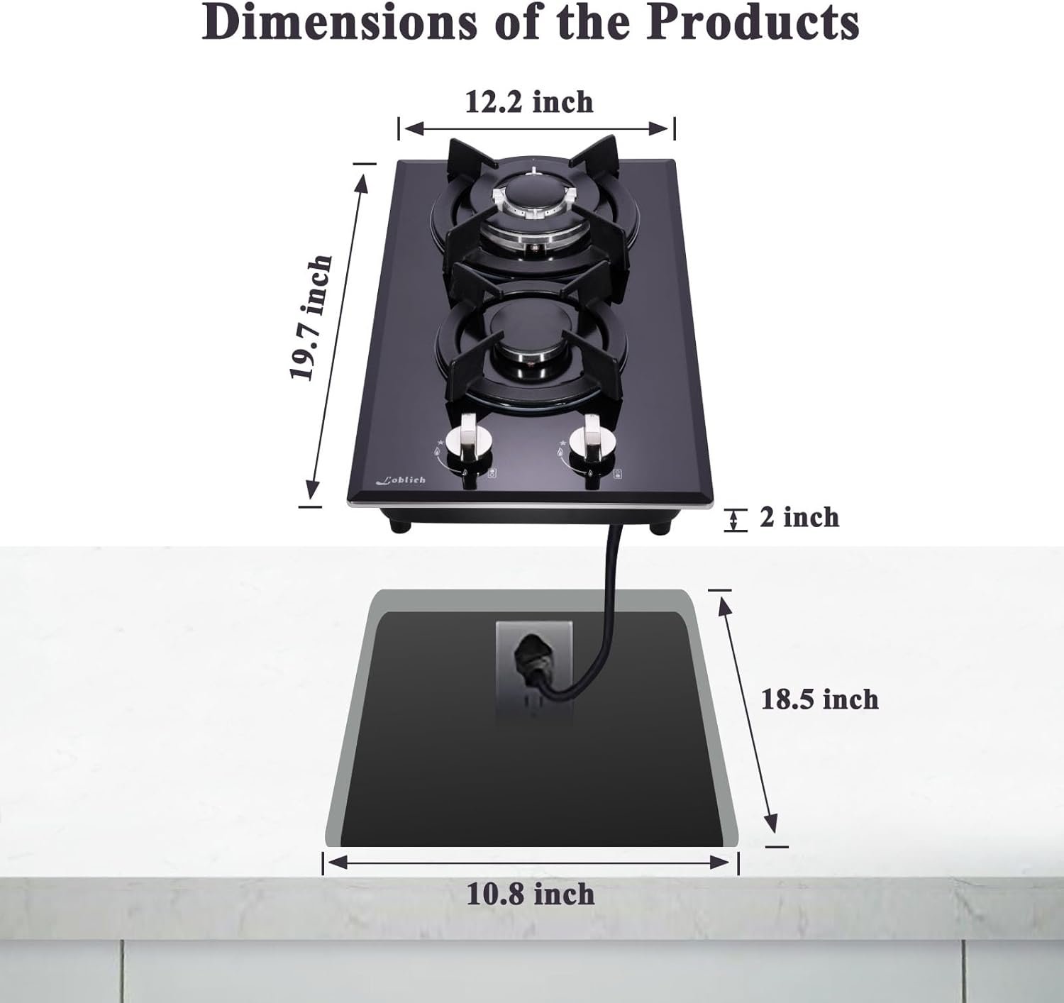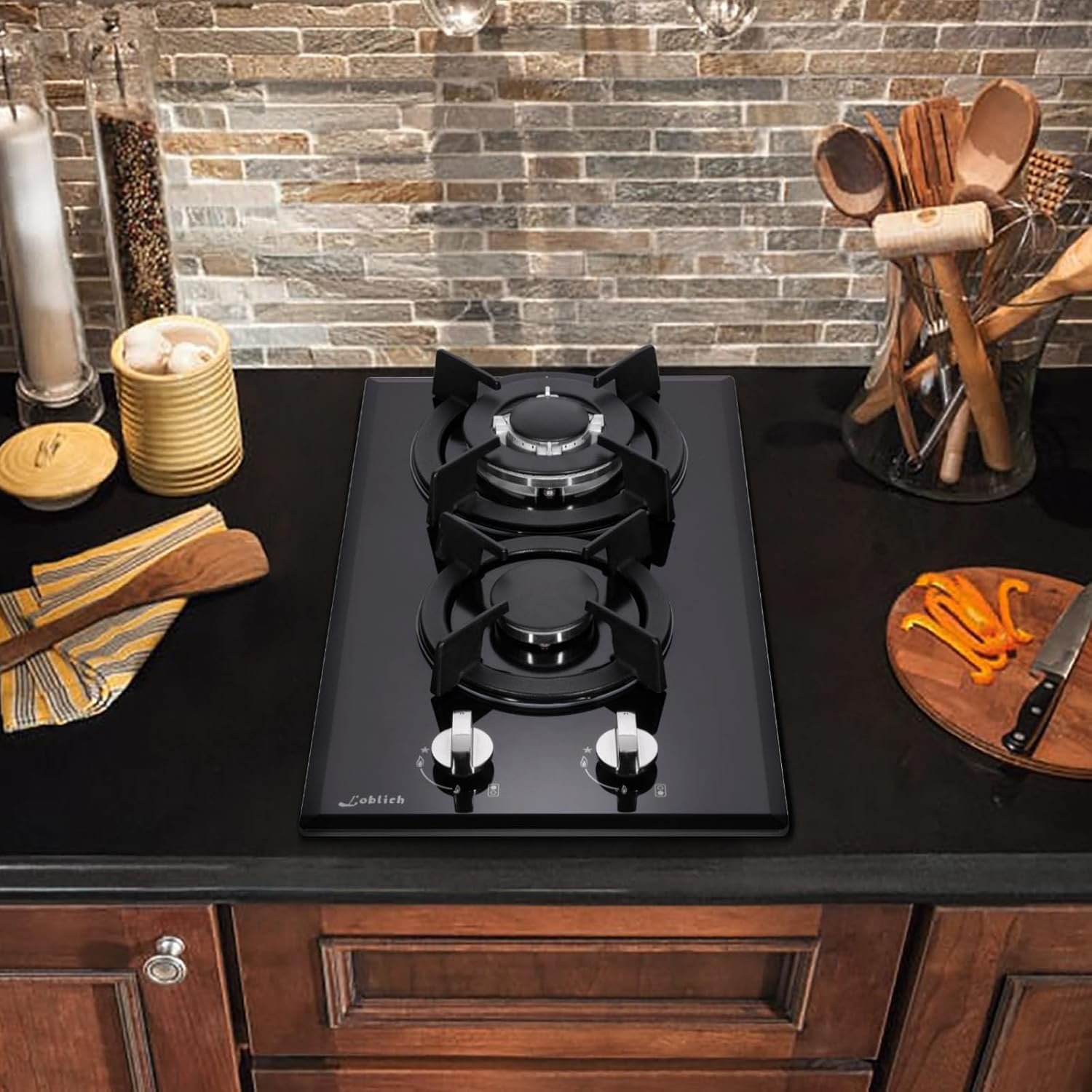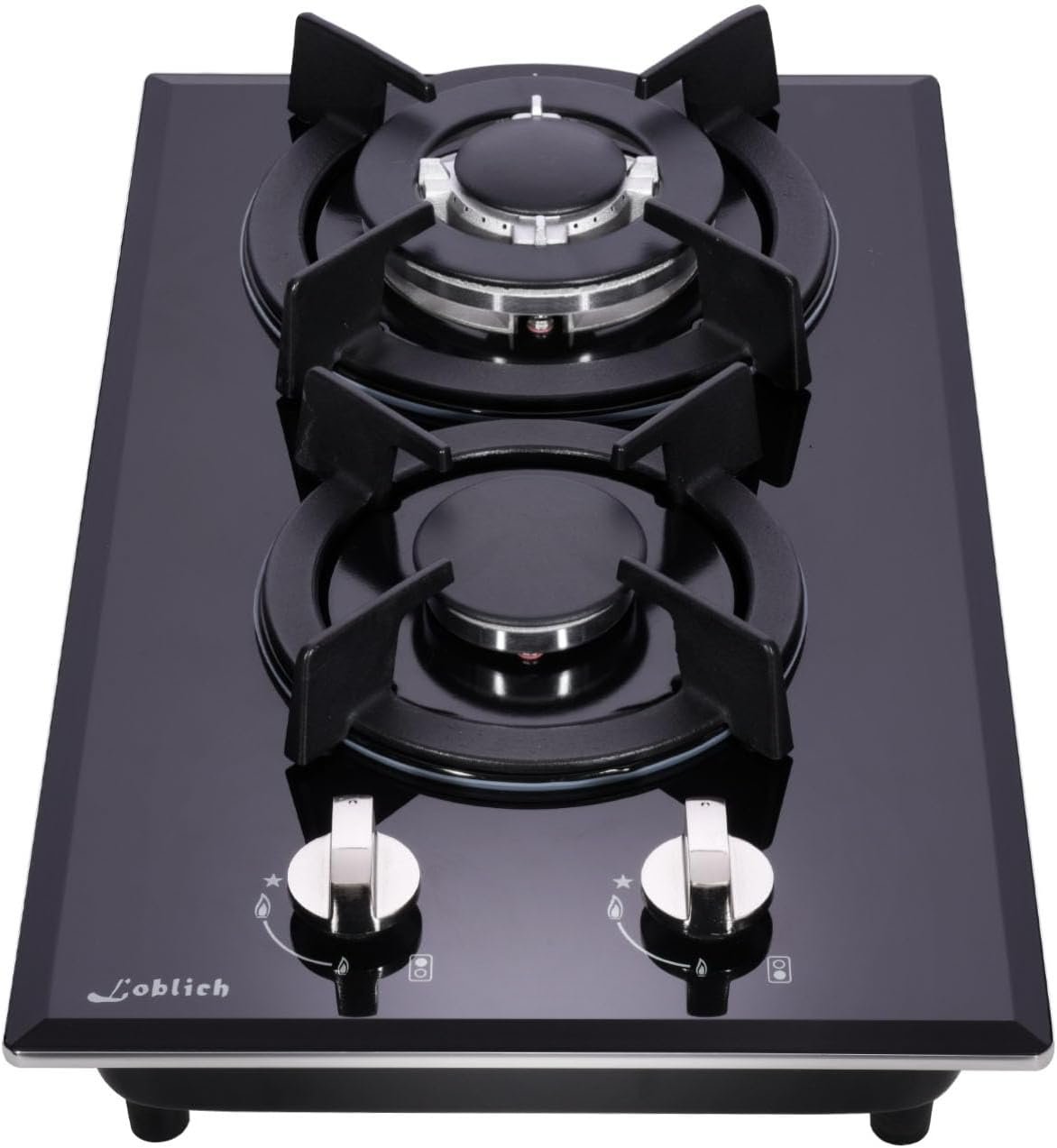 Two-Burner Cooktop: This gas cooktop offers two powerful burners for versatile cooking and meal preparation.