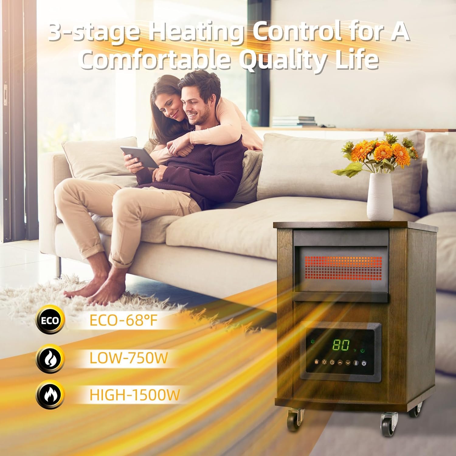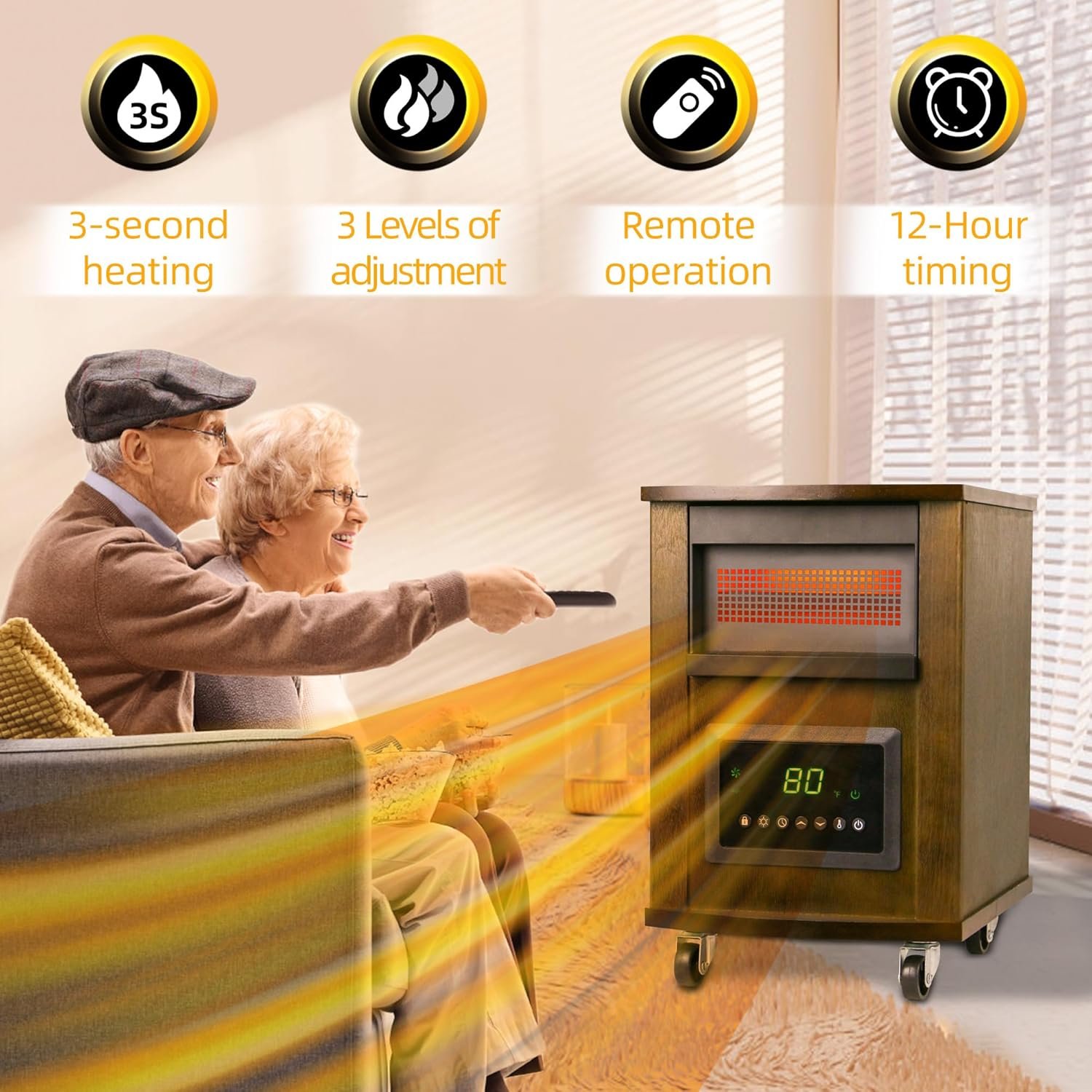 Portable and Versatile Space Heaters: With smooth-rolling caster wheels, our infrared space heaters are easy to move between rooms as needed. The 1.8-meter power cord make them ideal for use in bedrooms, living rooms, offices, and more
