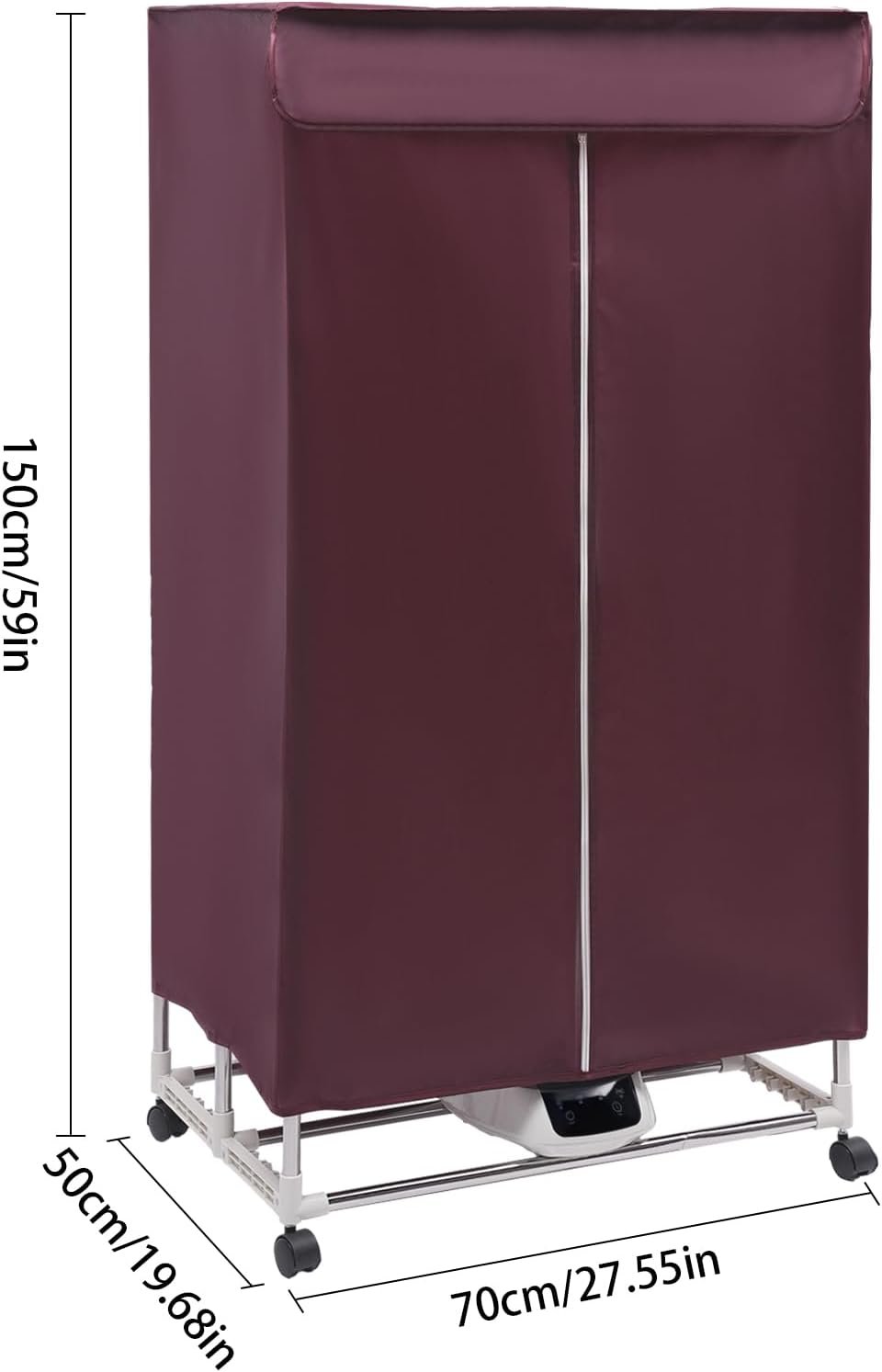 2 Tiers Portable Clothes Dryer,Electric Clothes Dryer Machine Laundry Drying Wardrobe, Foldable Clothes Dryer for Travel Apartments RV Home 1200-1500W (Wine Red, With Touch Screen and Timer)