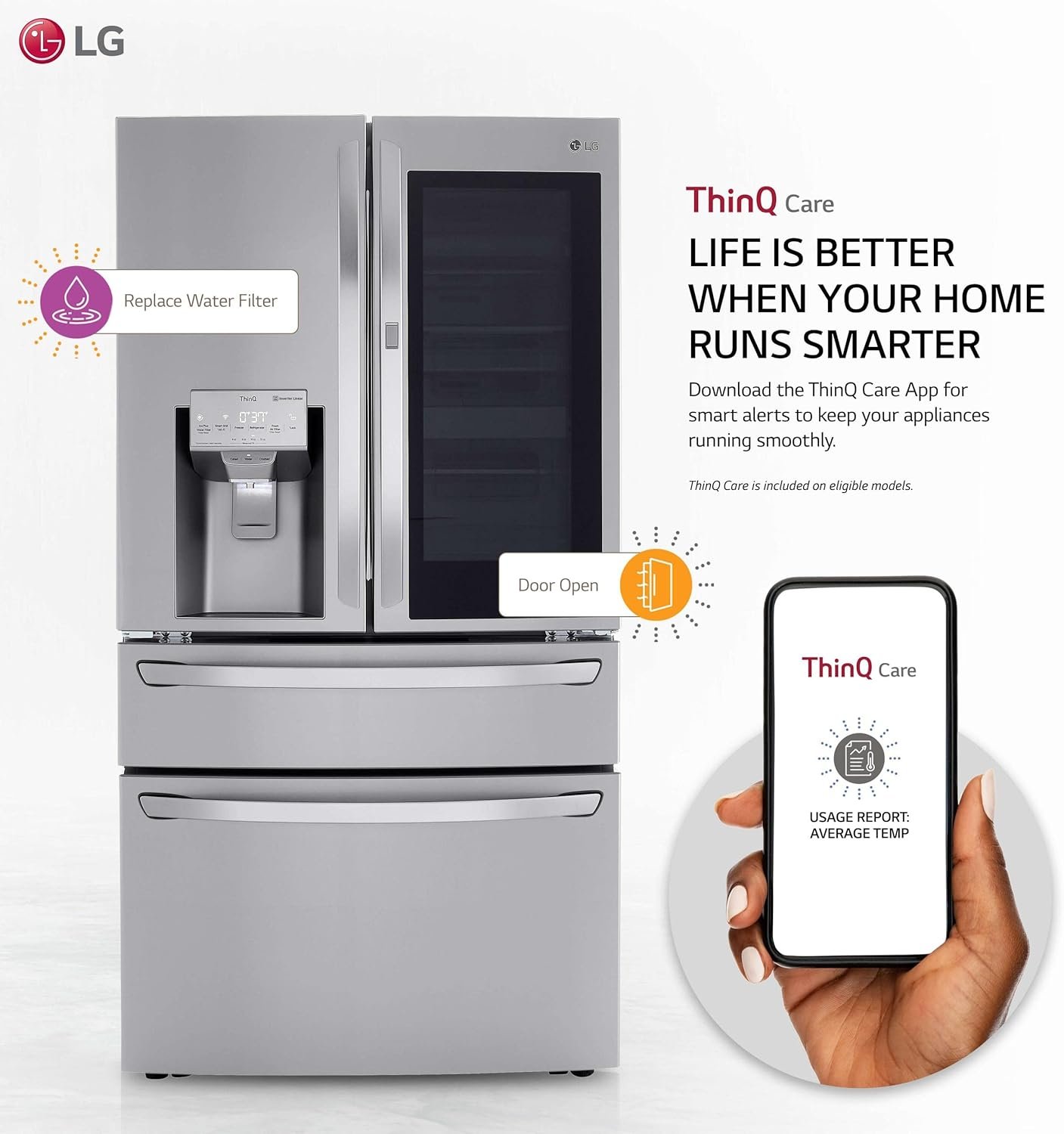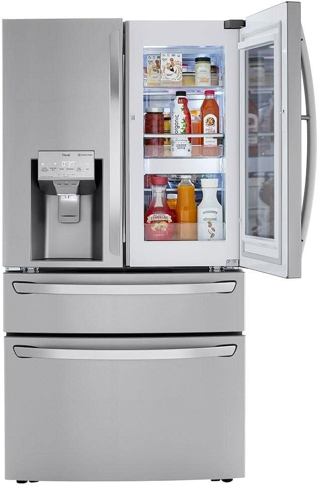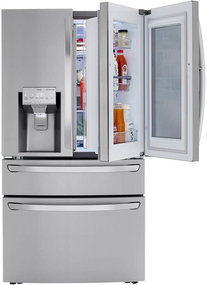 23 cu. ft. Capacity Counter-Depth InstaView™ Door-in-Door® Full-Convert™ drawer with 5 temperature settings Dual Ice Maker with Craft Ice™ ThinQ® Technology with ThinQ Care Discover ThinQ Care within the ThinQ app — proactive smart alerts to keep your appliances running smoothly. Get notifications about usage, maintenance, plus early diagnosis right on your smartphone. Get more space for groceries in a great feature-packed refrigerator. Nothing beats the convenience of having more food when you need it, and with a generous 23 cu. ft. of space, you’ll have room and room to grow. Get more usable space but keep it flexible with the Full-Convert™ Drawer – now with five temperature settings to fit your family’s needs. Choose from Chilled Wine, Deli/Snacks, Cold Drinks, Meat/Seafood, and Freeze settings. Plus, adjustable dividers keep everything organized. Combining innovation and distinctive design, the InstaView™ Door-in-Door® refrigerator will enhance even the most beautifully crafted kitchen. The sleek tinted glass panel illuminates with two quick knocks, so you can see inside the easy access compartment without opening the door, reducing cold air loss to help keep food fresher longer. LG’s exclusive Craft Ice™ slow melting round ice maker automatically makes batches of three ice spheres per day without the work of time consuming molds. Give your beverages the perfect ice for next level entertaining, from craft cocktails & whiskey to soft drinks, lemonade, even iced coffee. To get even more Craft Ice™, activate Craft Ice+ in the ThinQ® App to make slow-melting ice twice as fast. *Shape and clarity of ice will be impacted when Craft Ice+ is activated; may vary with settings, home use and water supply. Enjoy a built-in look with the counter depth feature on this LG refrigerator. Thanks to its slightly shallower depth, it can stand flush with your counter top for a sleek look. Finally, an ice & water dispenser that can accommodate just about any bottle size. With the convenient Measured Fill feature, you can also dispense exact amounts of filtered water in ounces (4,8,16, or 32). Ice makers are great, but not if it means you can’t fit all of your food in the fridge. The Slim SpacePlus® Ice System provides more shelf space and allows even more space for door bins. *Standard width french door refrigerator, excludes other LG manufactured products. Part of the ThinQ® app, Smart Learner analyzes habits to anticipate temperature, ice & energy needs. Nothing is more frustrating than an appliance that doesn’t fit. We’ll help you find the right one for your space. Series LG Type French Door Door Type 4-Door InstaView™ Door-in-Door® Yes Counter Depth Yes Total Capacity (cu.ft.) 22.50 Color PrintProof™ Stainless Steel Refrigerator (cu.ft.) 13.20 Full-Convert™ Drawer 2.80 Freezer (cu.ft.) 6.50 Total Capacity (cu.ft.) 22.50 Energy Consumption (kWh/Year) 716 ENERGY STAR® Qualified Yes Ice & Water Dispenser Yes Dispenser Type Integrated Ice & Water Dispenser Measured Fill Yes Daily Ice Production (lbs) 3.5 lbs IcePlus™ Production (lbs) 3.8 lbs Craft Ice™ Daily Ice Production 0.4 lbs Ice Storage Capacity (lbs) 3.0 + 3.6 lbs (Craft Ice 27 Sets) Ice System Slim SpacePlus® Dual Ice with Craft Ice™ Yes Dispenser Light Yes Water Filter LT1000P Linear Compressor Yes Smart Cooling Plus™ System Yes Door Cooling+ Yes Multi-Air Flow™ System Yes Temperature Sensors 9 Fresh Air Filter Yes Evaporator 2 Refrigerant R600a: Low Global Warming Potential, Zero Ozone Depletion Potential and More Energy Efficient Refrigerant than R134a Display Type Smooth Touch Control/White LED Temperature Controls Electronic/Digital Door Alarm Yes Child Lock Yes Auto Closing Door Hinge Yes Sabbath Mode Yes LoDecibel™ Quiet Operation Yes No. of Shelves 4 Split (3 Fixed+1 Folding) Folding Shelf 1 Cantilevered Shelves Yes Shelf Construction Spill Protector™ Tempered Glass Crisper Bins 2 Humidity Crisper Cool Guard Yes Refrigerator Light Micro Surface LED Dividers Yes Temperature Range (°F) -7, 29, 33, 37, 41 Handle Type SmartPull™ InstaView™ Door-in-Door® Yes Adjustable Door-in-Door® Bin Yes No. of Bins 6 Door Bin Construction 1 Piece (clear) Door Type Pull Drawer Drawers 2-Tier Organization DuraBase™ Solid Drawer Base Yes Drawer Divider Yes Ice Bin / In-Door Ice Icemaker & Ice bin in the freezer Freezer Light Premium LED Freezer Handle SmartPull™ Handle Wi-Fi Enabled Yes ThinQ Care Yes Works with Google Assistant, Amazon Alexa SmartDiagnosis™ Yes Contour Door Yes Hidden Hinges Yes Surface Smooth Fingerprint & Smudge Resistant Exterior Yes Handles Matching Commercial Handles All Available Colors PrintProof™ Stainless Steel, PrintProof™ Black Stainless Steel Blowing Agent Cyclopentane – Low Global Warming Potential, and Zero Ozone Depletion Potential Blowing Agent Depth with Handles 31 1/4″ Depth without Handles 28 7/8″ Depth without Door 24″ Depth (Total with Door Open) 43 1/8″ Height to Top of Case 69 1/8″ Height to Top of Door Hinge 70 1/4″ Width 35 3/4″ Width (Door Open 90˚ with Handle) 45 3/8″ Width (Door Open 90˚ without Handle) 40″ Door Edge Clearance with Handle 4 5/8″ Door Edge Clearance without Handle 2 1/4″ Installation Clearance Sides 1/8″, Top 1″, Back 2″ Weight (Unit/Carton) 333 lbs./ 355 lbs. Carton Dimensions (WxHxD) 38″ x 73″ x 33″ Parts & Labor 1 Year Sealed System (Parts & Labor) 5 Years Compressor (Parts & Labor) 5 Years Linear Compressor (Parts Only) 6-10 Years UPC 048231806183 *Dispenser graphics may vary.Prices, promotions and availability may vary by model, store, and online. Prices subject to change without notice. Quantities are limited. Check with your local retailers for their final price and availability. The cutting edge design and performance of LG Refrigerators is unmatched. Designed to last long, store more, and add style to your home, an LG Refrigerator keeps food cold and fresh in a space-saving and 