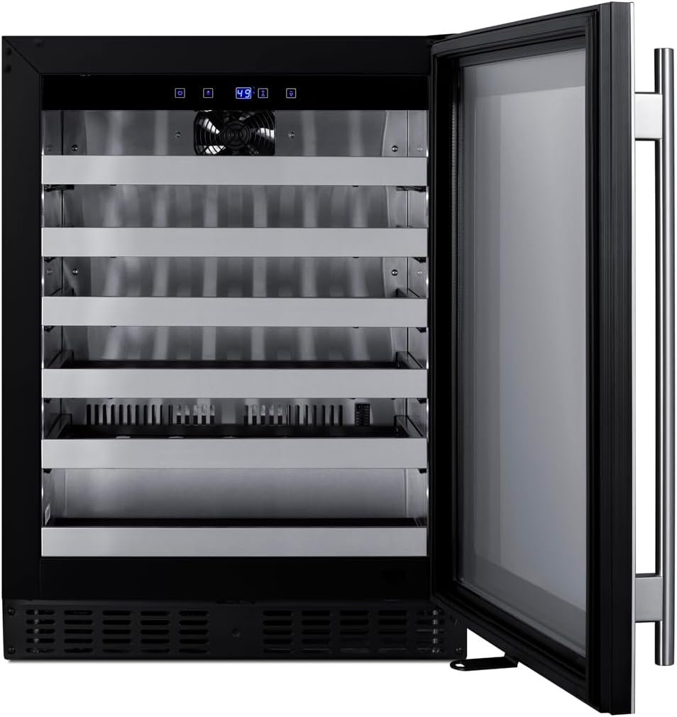 Shallow Dept 24″ Wide Wine Cellar: Summit’s shallow depth 24″ wide wine cellar, model ASDW2412V1, is designed for versatile installation in compact spaces. It accommodates up to 33 bottles in a single zone, making it ideal for kitchen islands, wet bars, and ADA-compliant counters, with adjustable height and a sleek, built-in design.