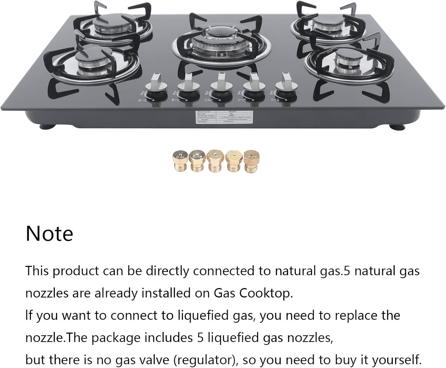 1 review for 30-Inch Burner Gas Stove, 5 Burners Built-In Stove Top Stainless Steel, Tempered Glass Smooth Surface Automatic Pulse Ignition Countertop Stove, NG/LPG Convertible