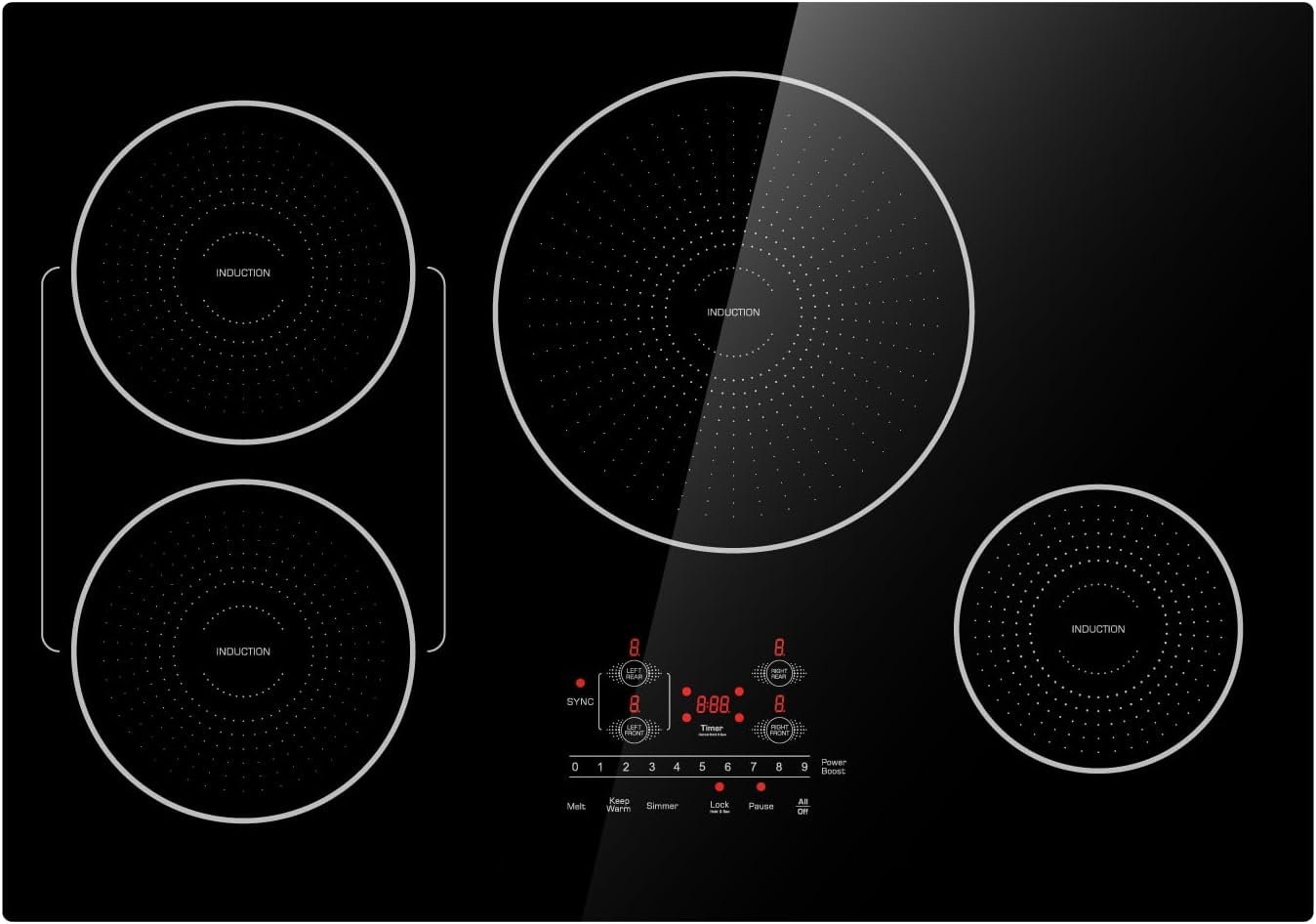 Pros:- Heats quickly- Installs easily- Inexpensive- Intuitive controls- No knobs for food to get stuck underCons:- Element shuts off if pan removed for 30 seconds- Requires induction cookwareMy partner and I purchased this to replace our Whirlpool electric (non-induction cooktop). Our main complaint with the Whirlpool was that it took forever to heat, even on its highest setting. This induction cooktop heats much faster. It can boil a small pot of water in a few minutes.When doing research on induction cooktops, we came across a video claiming that the induction elements in inexpensive cooktops were all small (6 inches), leading to cooking problems in the periphery of the pan. This does not appear to be a problem with the large element on this cooktop. The first thing I cooked on it were crepes in a 12 inch pan. The outer portion of the crepes cooked thoroughly; though the outer 1 inch or so were not as brown as the inner part of the crepe. Thermal photos of the 12 inch pan after a few seconds of heating show the relative size of the heating elements. The front right (small) element heats a small section of the pan; the rear right (large) element heats a much larger section of the pan. Overall, I’m satisfied with this cooktop’s ability to heat a 12 inch pan.The left side of the cooktop has a “sync” feature that allows you to control the two left burners with the same settings. This is for griddles, or pans that you might want to span two burners. The manual suggests there is a “bridge” element. To me this sounded like there was another heating element between the two burners to heat the center of the griddle. Based on thermal pictures of a pan spanning the two left burners (in “sync” mode”), I don’t see any heat from a third element. The heat on the left appears to come only from the two elements drawn on the surface.The specs for this don’t the element wattage; however the included manual does. Both left elements are 1850W, 2100W in “boost” mode. The large right rear element is 2500W, 3200W in “boost” mode. The small right front element is 1200W, 1600W in “boost” mode.When heating there is a buzzing sound. Not too loud, but worth mentioning.When making crepes, I often take the crepe pan off the burner to either serve them or flip the crepe. At one point while doing this the element shut off. Having to turn the element back on in the middle of cooking was a little annoying; 60 seconds would be ideal.The controls are straightforward. Press the burner button, then press the cooking level. There are also preset levels for certain cooking styles, and an “All Off” button. In my opinion, the touch controls make the cooktop much easier to clean than one with knobs.As with any induction stove, not all cookware is compatible with this. If a magnet doesn’t stick to the pot, this won’t heat it. If you’ve looked into induction stoves this isn’t surprising, but again worth mentioning.We’ve had this stove a total of 24 hours and have used it to boil water for tea and make crepes. The crepes cooked evenly and the water boils really fast. We’re really happy we bought this cooktop.