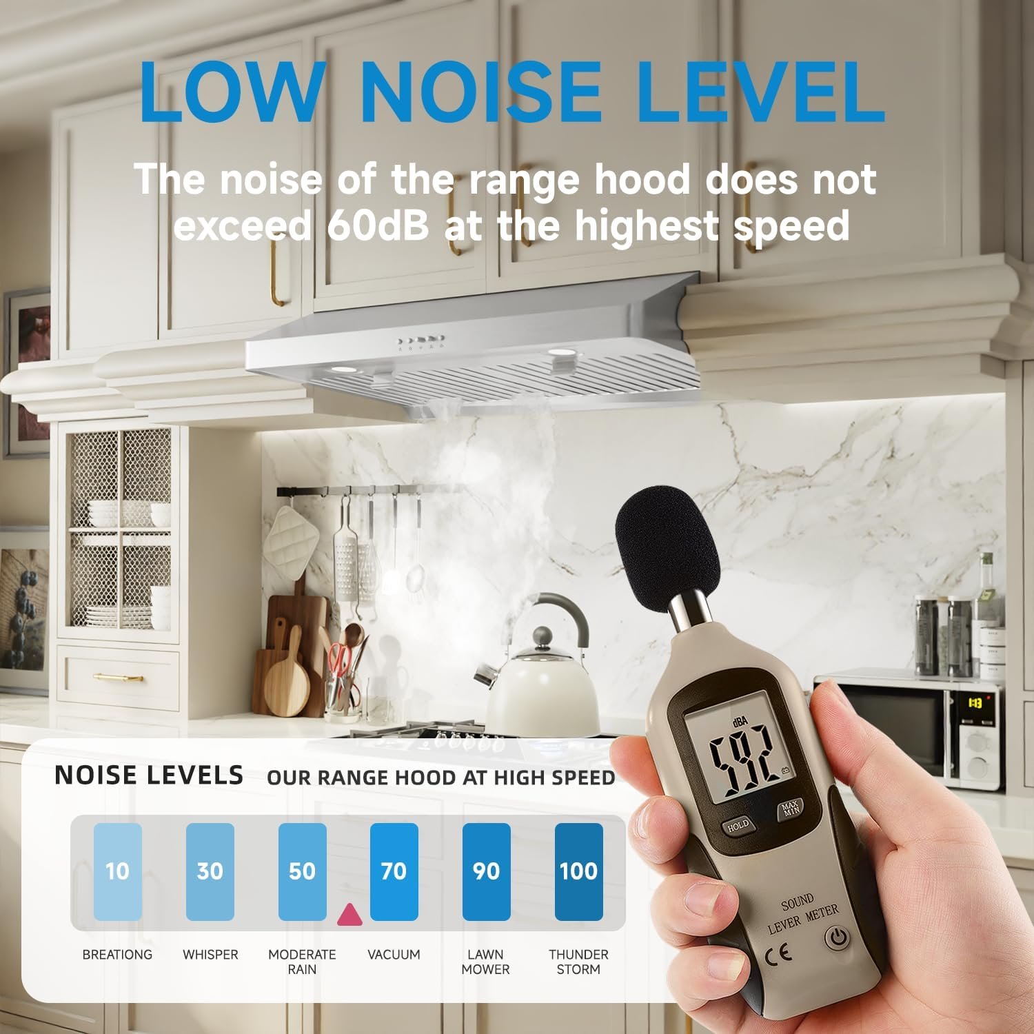 After years of experimentation and research, we have found that the 0.8mm thickened stainless steel body of the range hood ensures durability and stability, minimizing vibrations caused by motor operation. This means a longer-lasting and more reliable kitchen appliance for your home.