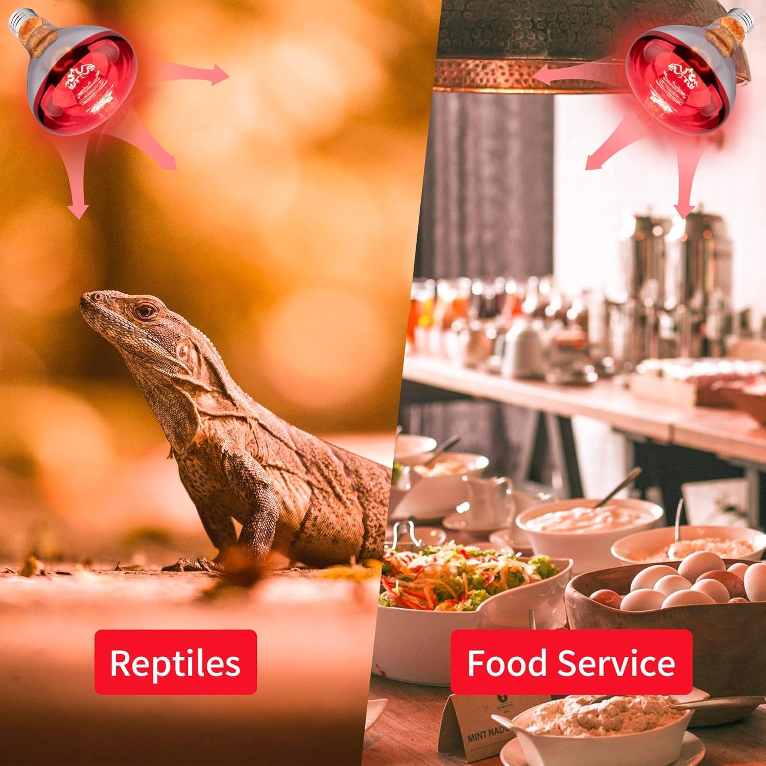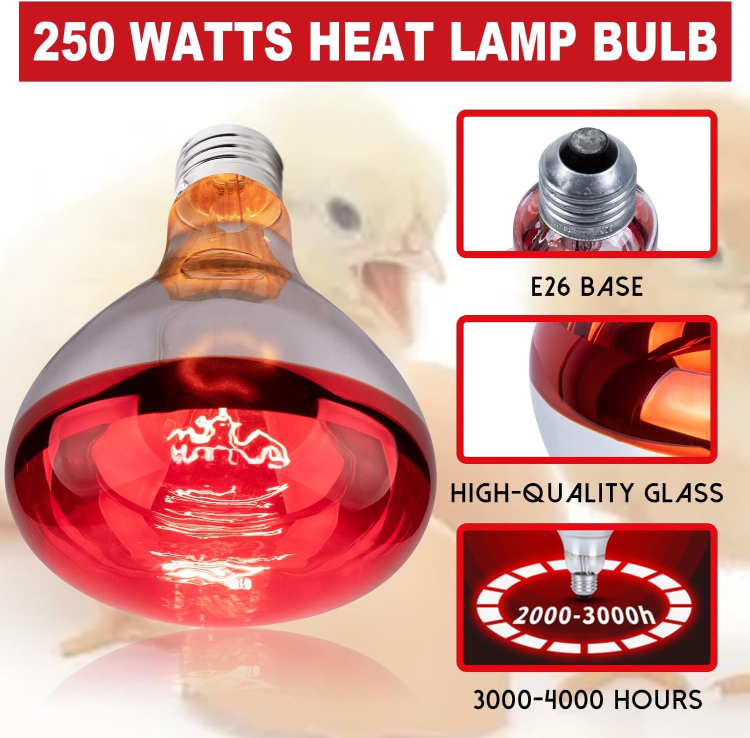 Agricultural Use: The 250W heat lamp bulb is ideal for breeding and rearing of chickens, chicks, pigs, poultry, calves, foals, dogs, and other animals. It provides the necessary warmth to create a comfortable and healthy environment, supporting the growth and well-being of your livestock and pets.
