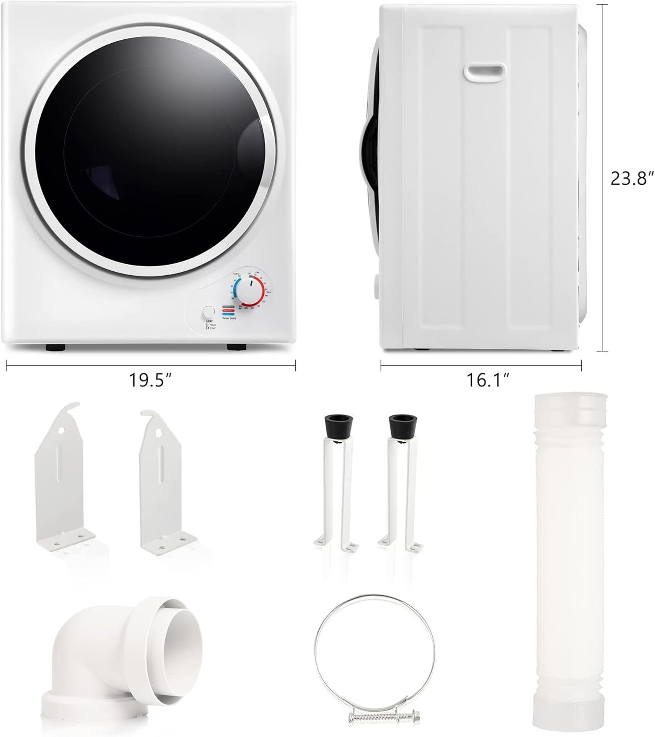 FCC/CEC/DOE certification can guarantee the safety and quality of our portable dryer. Package includes 1 dryer, 2 hanging brackets, 2 wall brackets, 1 exhaust fitting, 8 screws 12mm long, 5 screws 53mm long, 1 manual. If you have any problem, please feel free to contact us, our professional after-sales team will try their effort to solve your problem.