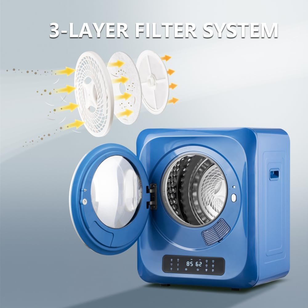 6.6lbs Portable Mini Cloth Dryer Machine FCC Certificate PTC Heating Tumble Dryer Electric Control Panel,Blue Body with Black Door,120V/850W,for Home/Apartment/Dorms,UV Sterilizaiton,Digital dispaly