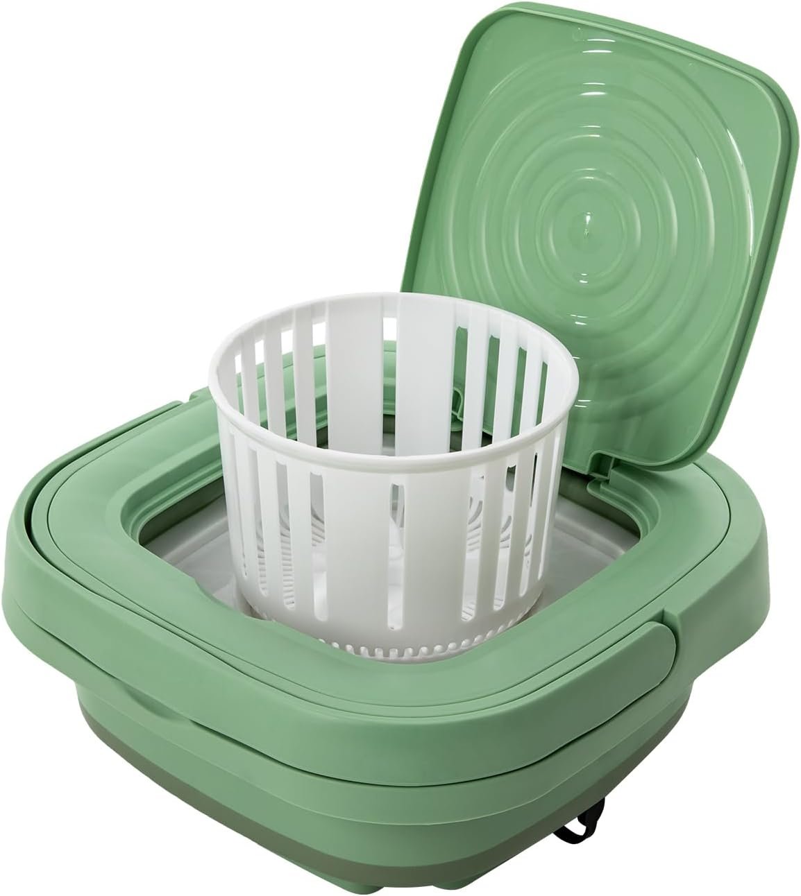 【Portable Mini Machine】: Convenient mini washing machine is a bucket folding lavadora. You can fold it to a smaller size of 11.61*11.61*5.71 inches when not in use, together with 2.65 lbs light weight, making it easy to carry for camping, business trips, and other outdoor uses and allowing for space-saving storage in your laundry room, balcony, or bathroom. Mini washing machine is very small in size, does not take up extra space, suitable for apartment, office, camping, RV, outdoor and other scenes.