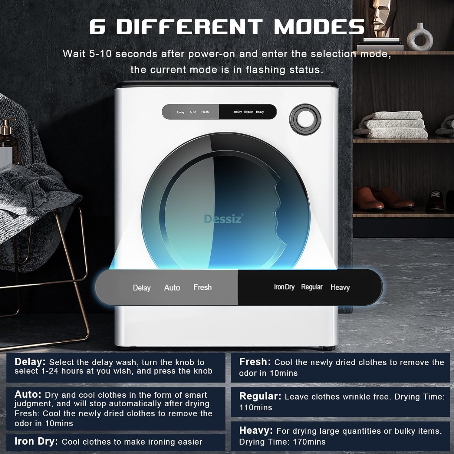 Easy To Use: Knob-designed button, which makes the clothes dryer operation simple and easy to use without being overly complex. The see-through door window allows you to observe the status of your clothes at any time.