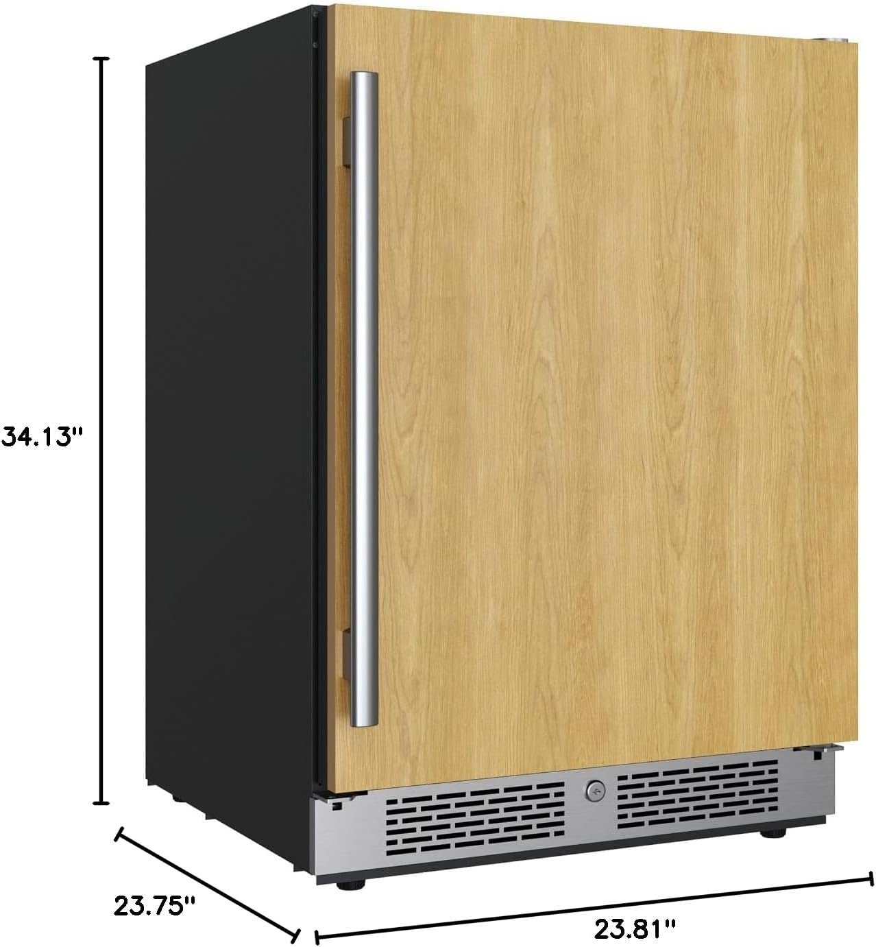 True-key lock; Seamless stainless steel door and door handle; Touch control panel; Dimensions (without handle) 34.125″ H x 23.8125″ W x 23.75″ D (Depth with handle: 25.625″)