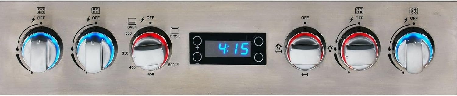 I like the style of the stove, the placement of the large burner upfront, the drawer underneath, the low profile back, the oven interior lights, the nice heavy grills. The oven is smaller inside than my old 24″ (possibly more insulation?) and I had to get new roasting and baking pans to fit. The temperature on the dial is lower than what my free-standing thermometer registers. I had to get used to the fact that the oven door has to be in full open position when you turn the oven on. The dial lights were too neon bright for me so I turned them off with a button on the clock unit. The stove was purchased 14 months ago and installed two months later, i.e., the one-year warranty expired two months ago. Now the clock/timer and the dial light for the big burner have gone out together and the blue lights on the other dials came on. This can’t be fixed by me: I have to order a replacement unit and have a repairman come. Without it, there is no clock/timer and no control of the dial lights, so I’m stuck with the blue lights. Doing the repair isn’t worth it. And fortunately I don’t cook a lot. If you do, I don’t think I’d recommend this.