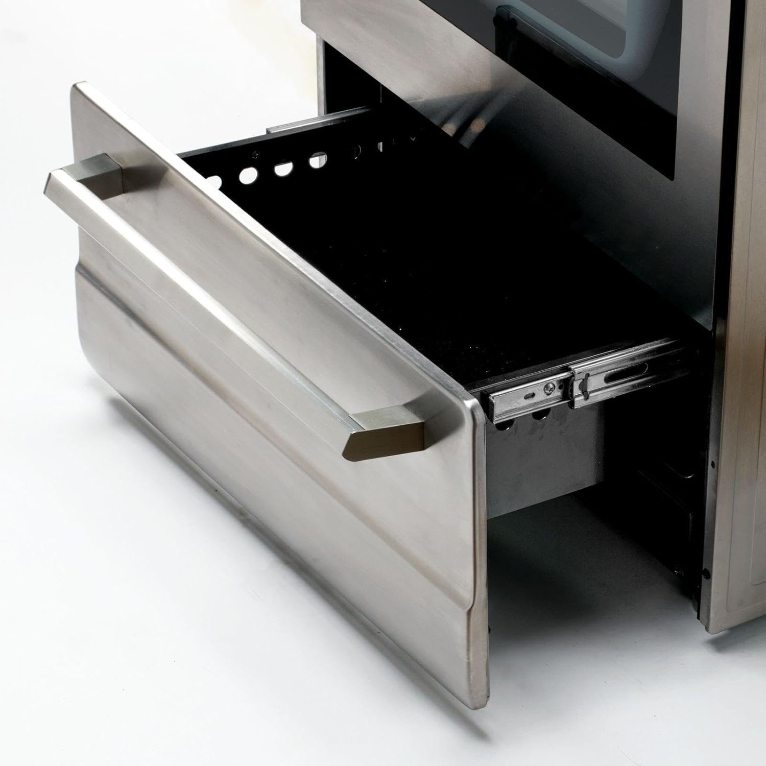 USER-FRIENDLY DESIGN: Includes 2 oven racks, a broiler with a broiling pan, a soft-close roll-out storage drawer, and a seamless framed glass oven door.