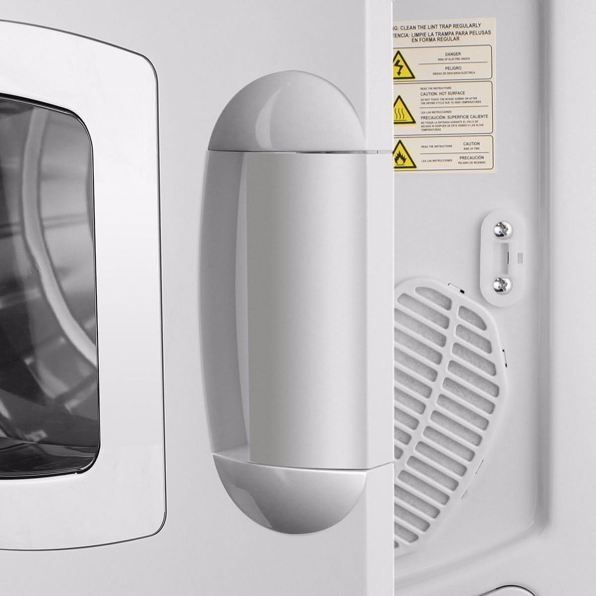Color: White Material: Stainless Steel Tumble Voltage: 120/60hz Watt: 1400 Drying Capacity: 8.8lbs Load Type: Front Dryer Power Source: Electric Overall Dimension: 23-1/2″(W) x 17″(D) x 27-1/2″(H)