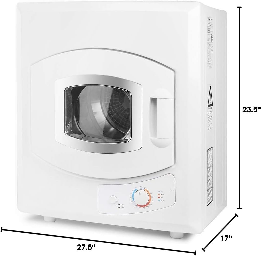 Color: White Material: Stainless Steel Tumble Voltage: 120/60hz Watt: 1400 Drying Capacity: 8.8lbs Load Type: Front Dryer Power Source: Electric Overall Dimension: 23-1/2″(W) x 17″(D) x 27-1/2″(H)