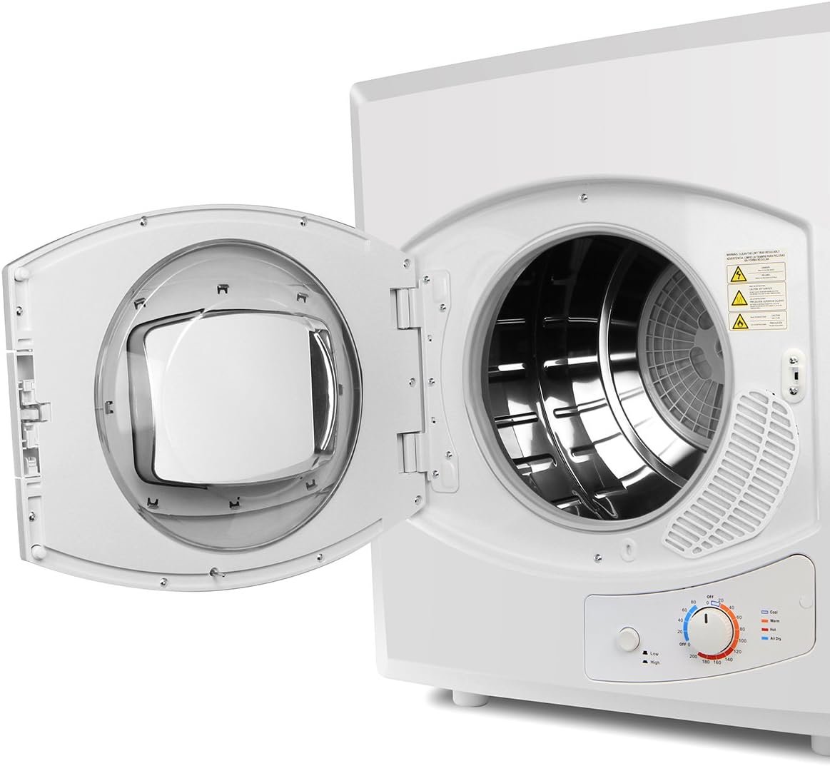 Barton Portable Tumble Dryer Stainless Steel Drum Compact Clothes East Control Panel Automatic Drying Mode, White