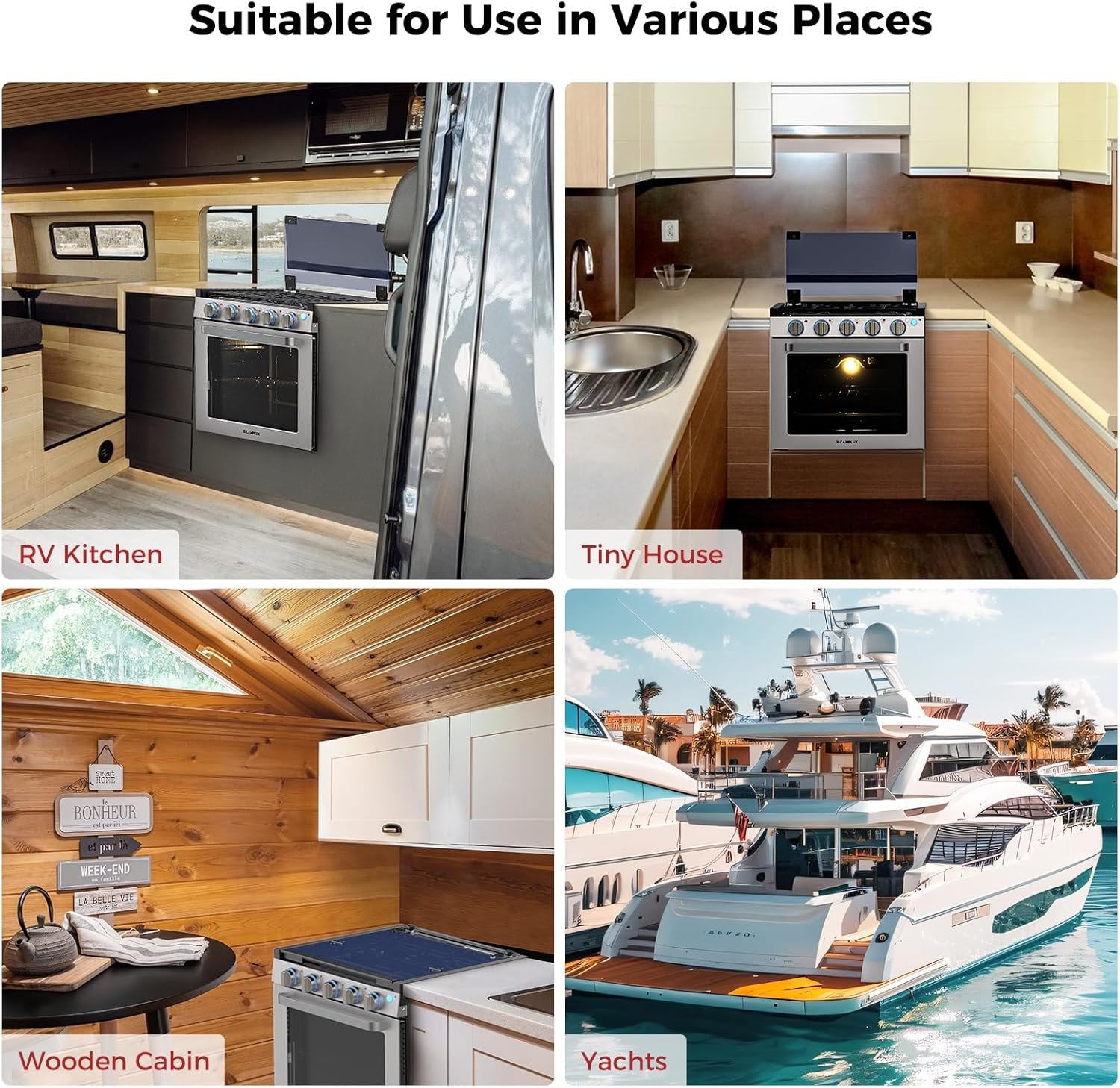 Arrived in fine shape a day earlier than expected! Super impressed by the obvious quality immediately evident. Super easy installation and setup. Will update review after some extended use.Break Break31 Oct 2024 – I’ve used the stove/oven for about a month now and give a full five star rating… if I could give six, I would. Firstly, it lights immediately, something I can’t say about my last stove (Furrion). Secondly, the burners are clean burning and dependable…no dead spots or yellow flames. Finally, the oven bakes evenly without hotspots or burning. I can finally put cokies in that are perfectly browned throughout without burnt edges or bottoms! I can’t express the level of my delight !!!!!!!