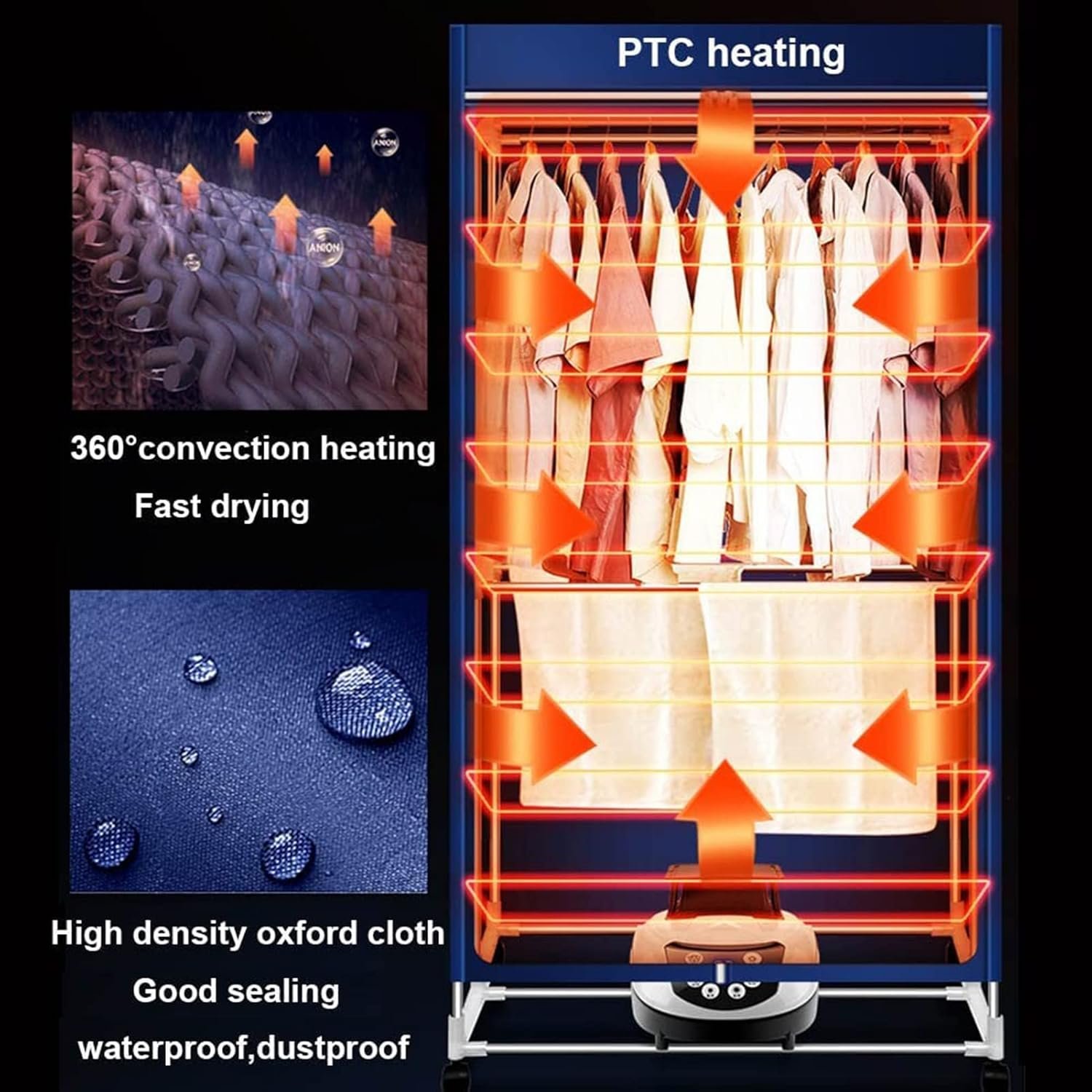 Large-Capacity Electric Dryer: 2/3-layer design, the clothes into the dryer, while the constant temperature of 360-degree convection will dry quickly, without damage to clothes, no wrinkles, durable stainless steel tube structure, load-bearing capacity of up to 30KG/66Ibs