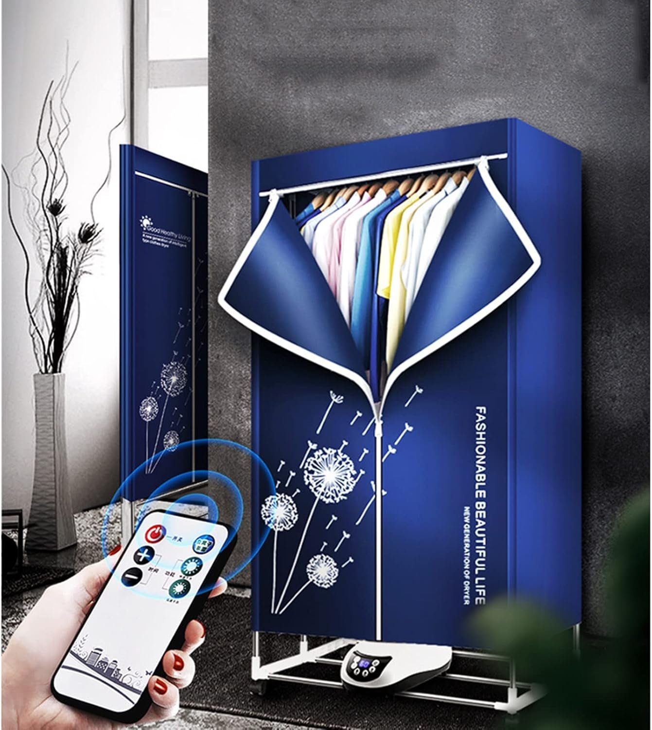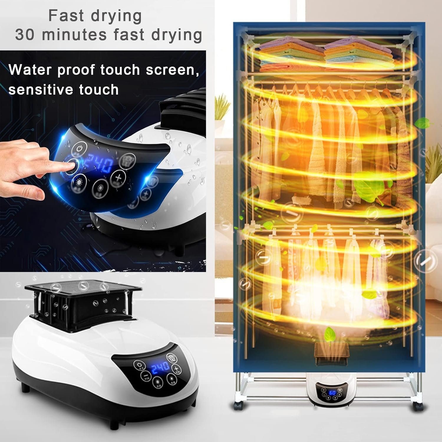Smart Remote Control: Portable dryer with smart touch screen control, maximum drying time of 240 minutes, you can set the drying time for different clothes and seasonal requirements, wireless remote control allows elderly pregnant women to avoid trouble