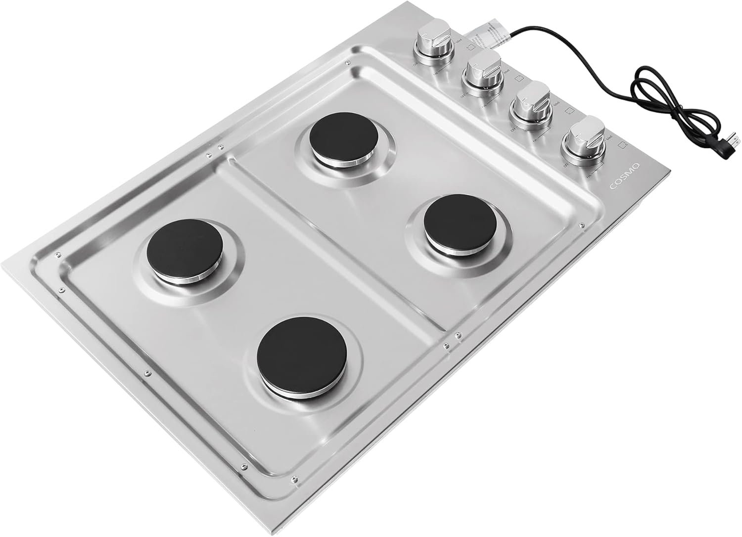Super happy with this. Excellent product for the price. Although the middle surface flexes a little with some weight, It doesnât really affect the amazing performance. The 2 bigger burners are super hot and boil water super fast. They also work great for browning and searing meat. It actually outperformed the Viking we replaced it with. Our old 30â Viking only had 4-burners with the knobs on the right side. The two hottest burners were placed side by side so we couldnât really cook well with 2 burners at a time because itâs too crowded. This Cosmo stovetop has the knobs on the bottom which allows for more space for extra pots or pans.