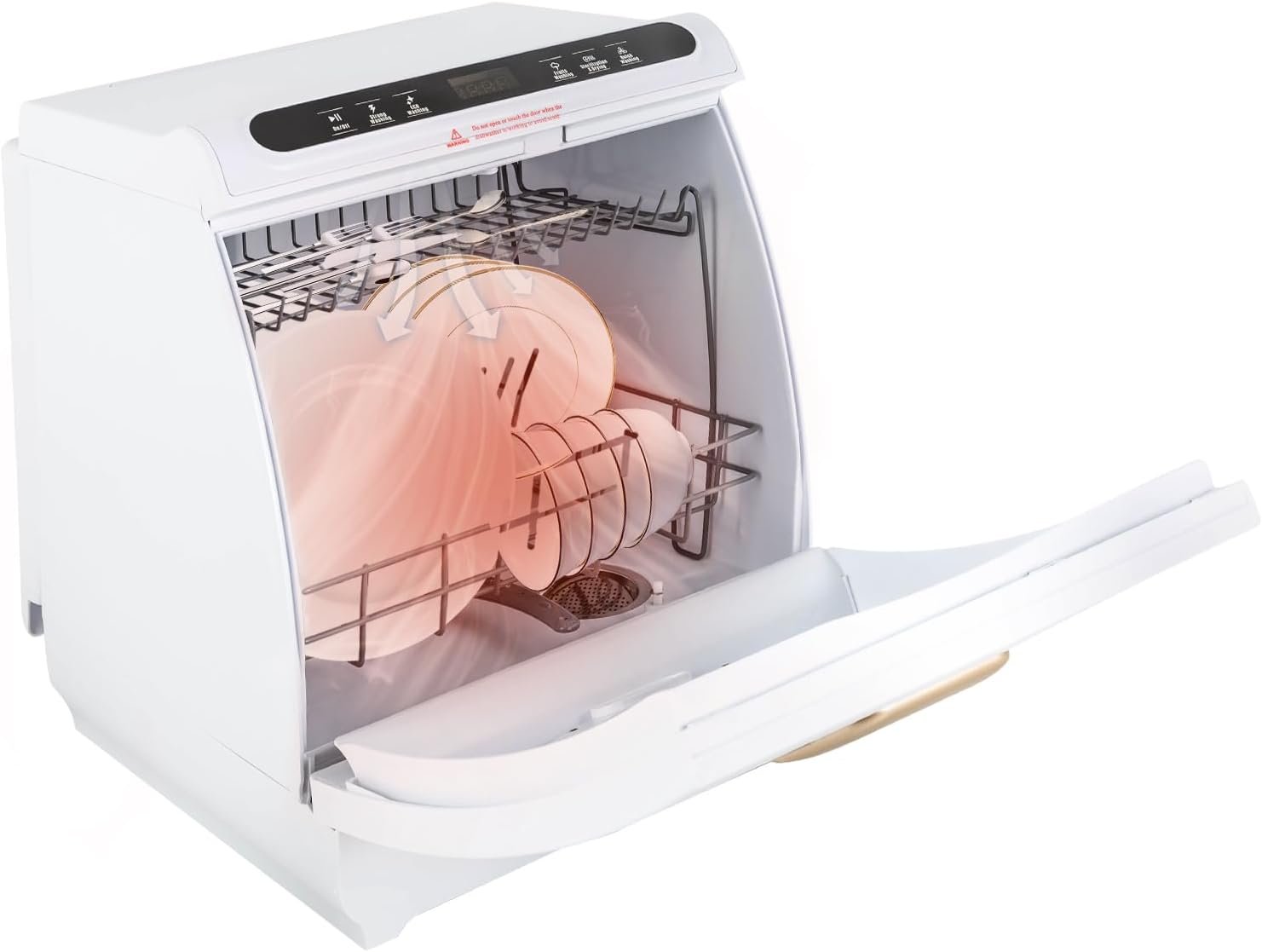 [𝐄𝐟𝐟𝐢𝐜𝐢𝐞𝐧𝐭 𝐅𝐮𝐧𝐜𝐭𝐢𝐨𝐧]:900w power, 5 cleaning modes, 6-hole upper spray plus 11-hole lower spray allow it to rinse every corner of the bowl in three dimensions, restoring dirty dishes to a clean and shiny state in a short time, while the 161℉ high temperature and PTC heating can prevent odors