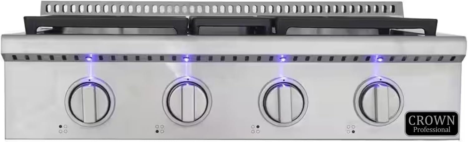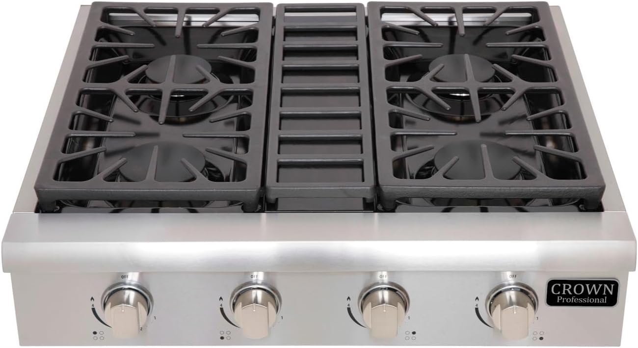 Crown 30 Inch Professional Gas Range Top – Stainless Steel Gas Cooktop with 4 High-Performance Sealed Burners – Durable & Sleek Design – Precise Temperature Control for Culinary Cooking | ART3001