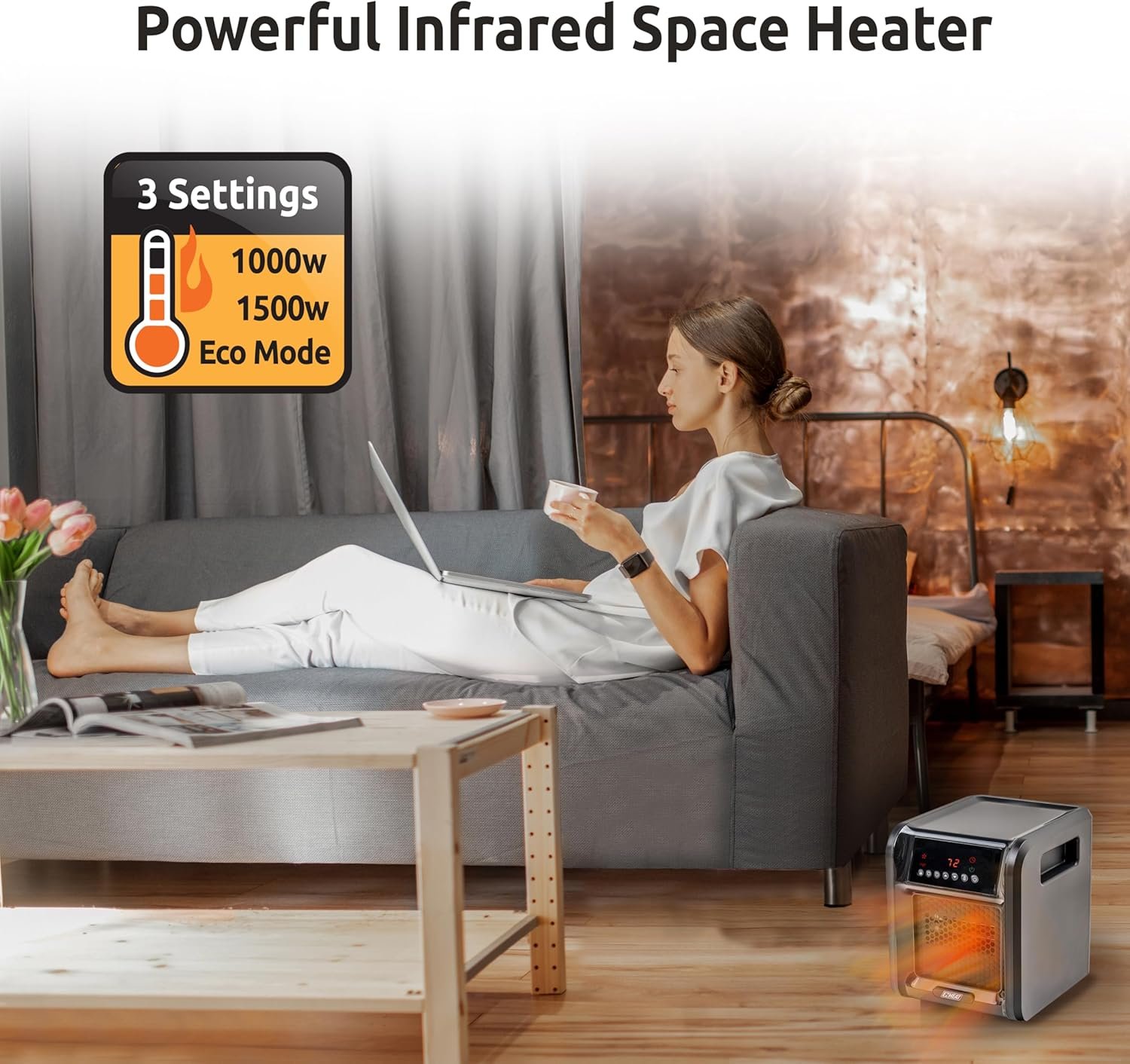 OPTIMAL TEMPERATURE CONTROL: This digital infrared heater is designed to provide consistent and customizable heat for medium-sized rooms. Whether it’s your office, garage, bedroom, or any other room in your home, you can rely on this heater to maintain your ideal temperature. With its advanced technology, it ensures efficient and precise heat distribution, keeping you comfortable in any environment. Say goodbye to chilly spaces and enjoy the perfect warmth wherever you need it.