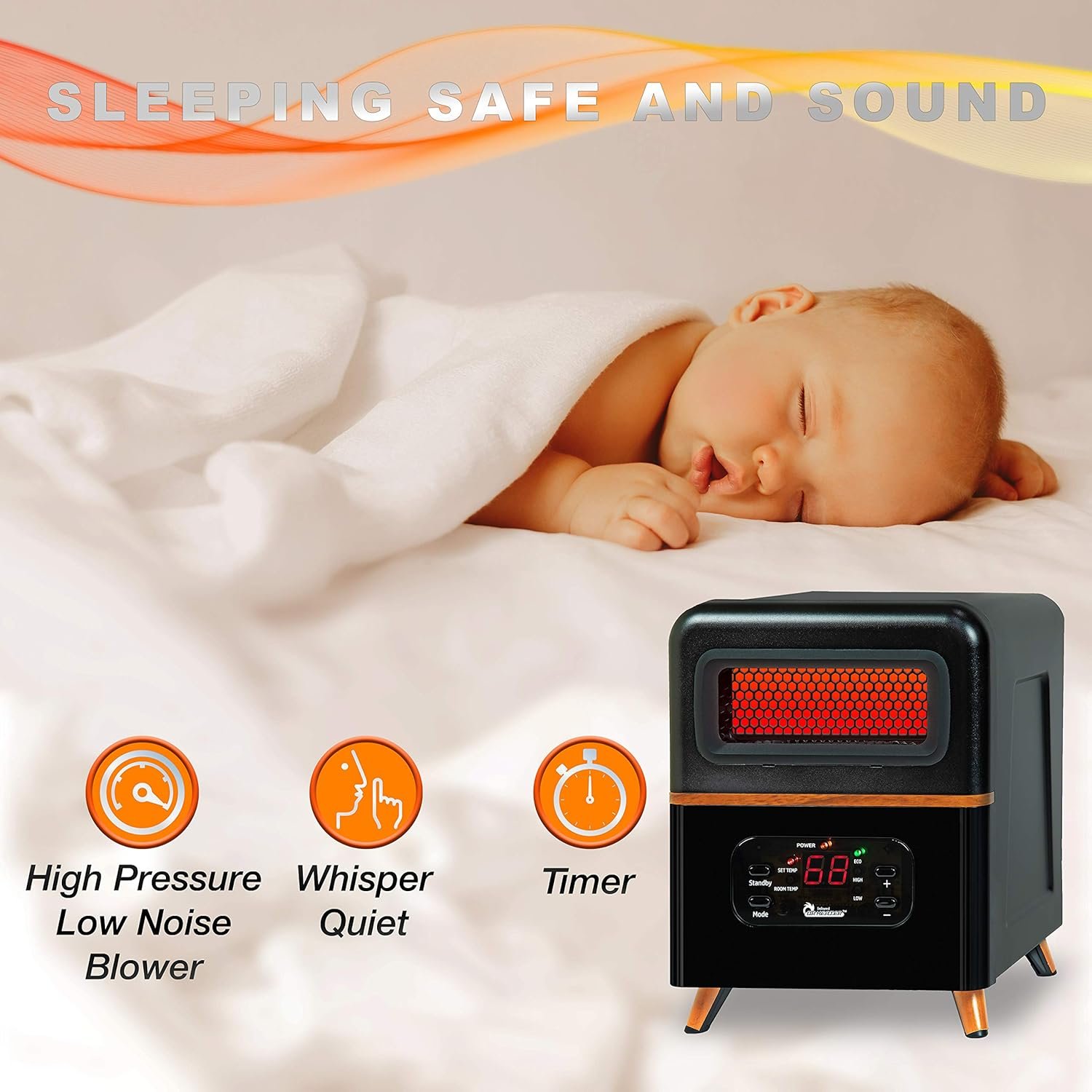Dr Infrared Heater, newly engineered and designed in the US, is one of the best alternative and most efficient heating sources for your winters. The Dr Infrared Heater’s Advanced Dual Heating Hybrid System, combining PTC and Quartz Infrared Element, keeps you warm this winter while saving on heating bills. Equipped with a Hybrid Dual Heating System , overheat protection, trip-over sensor and High Velocity Low Noise blower, the Dr Infrared Heater unique hybrid heating system increases the heat distribution and heat transfer rate and the result is heating your room to a comfortable temperature, fast. The Dr Infrared Heater is certified by Underwriters Laboratories (UL) and Canada, ensuring the highest safety standard. The Dr Infrared Heater is perfectly safe around children and pets and only gets warm to the touch. It does not have exposed heating elements that can cause a fire. The Dr Infrared Heater comes with Energy saving ECO Mode, High (run at 1500W) and Low (run at 1000W) setting. 120V 1500W, 12.5A, 60Hz . Engineered in San Francisco, CA.