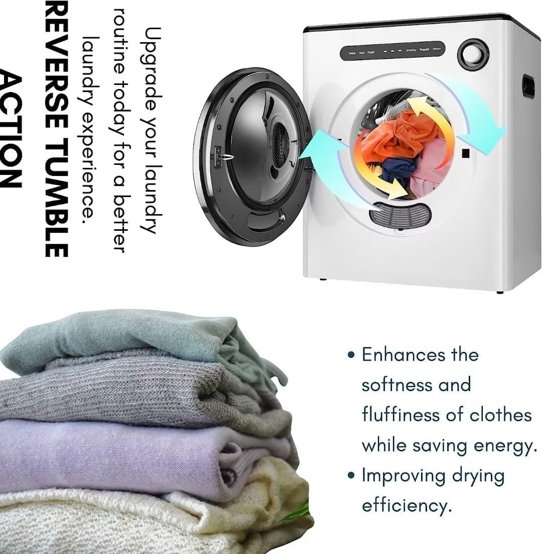 Portable & Large Capacity: Oditton portable laundry dryer is only 19.7*16.5*23.6in and 34lb, which is compact and portable for use in small spaces such as RVs, dorms and apartments. But it has an 8.8 lbs stainless steel front load tumble drum.