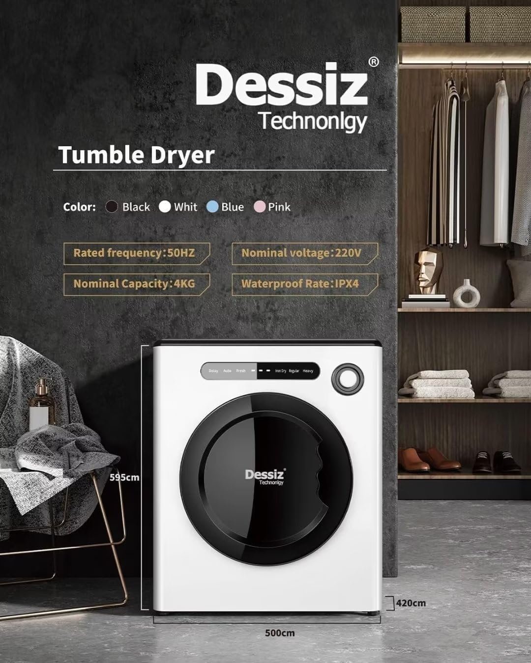 Powerful Motor: This compact clothes dryer is featured 850W power, and the maximum temperature can reach 149°F for ensuring your clothes dry quickly even on a rainy day. In addition, it featured various drying modes according to different fabrics and weights.