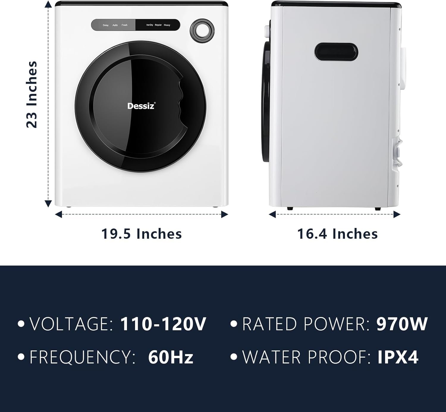 Drying Capacity: 11LBS Rated Power:970W Voltage: 110V Simple Knob Control Fluffy With Filter Net 58dB Low Noise Smart Humidity Sensing