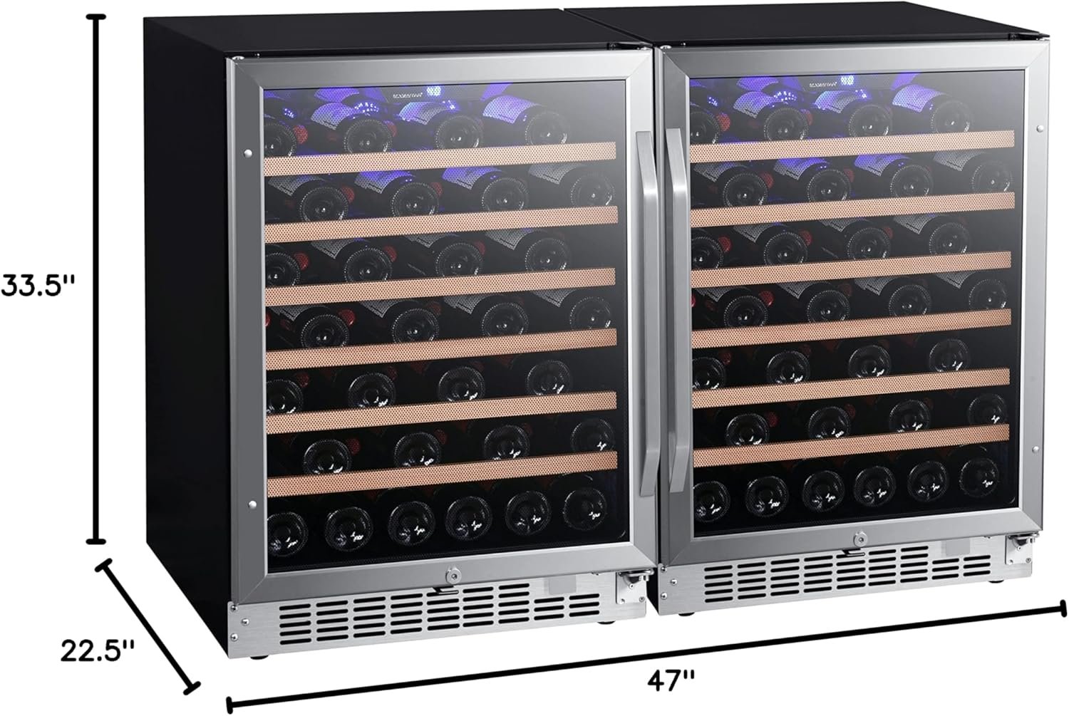 EdgeStar CWR532SZDUAL 47 Inch Wide 106 Bottle Built-In Side-by-Side Wine Cooler with LED Lighting