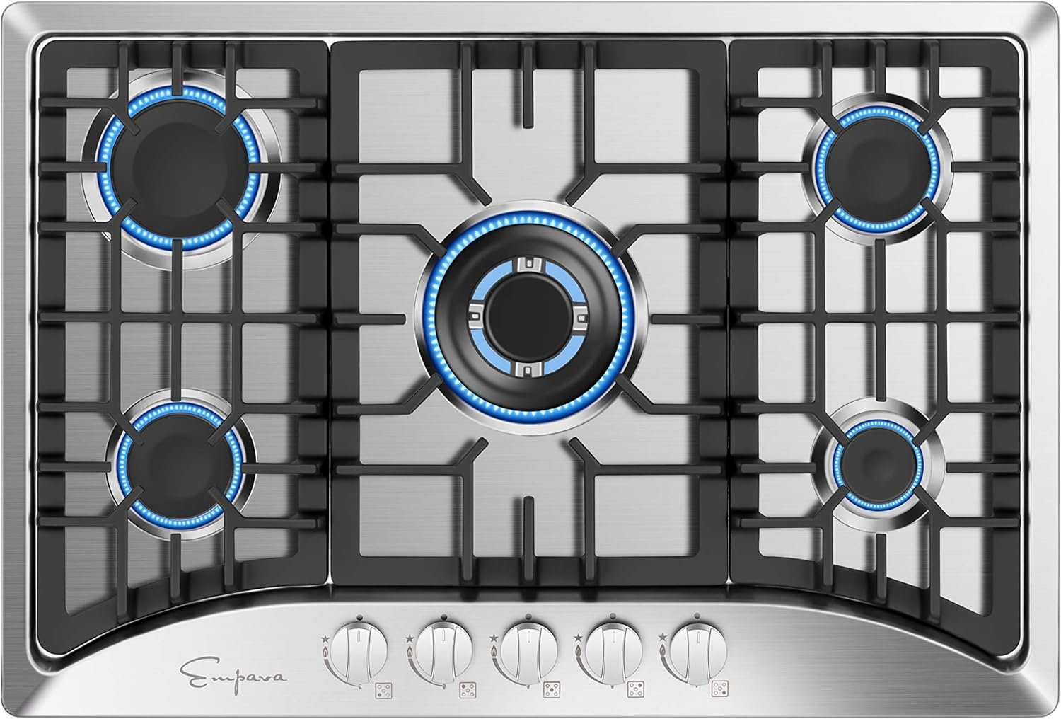 Empava 30″ Gas Stove Cooktop with 5 Italy Sabaf Sealed Burners NG/LPG Convertible in Stainless Steel, 30 Inch, Silver