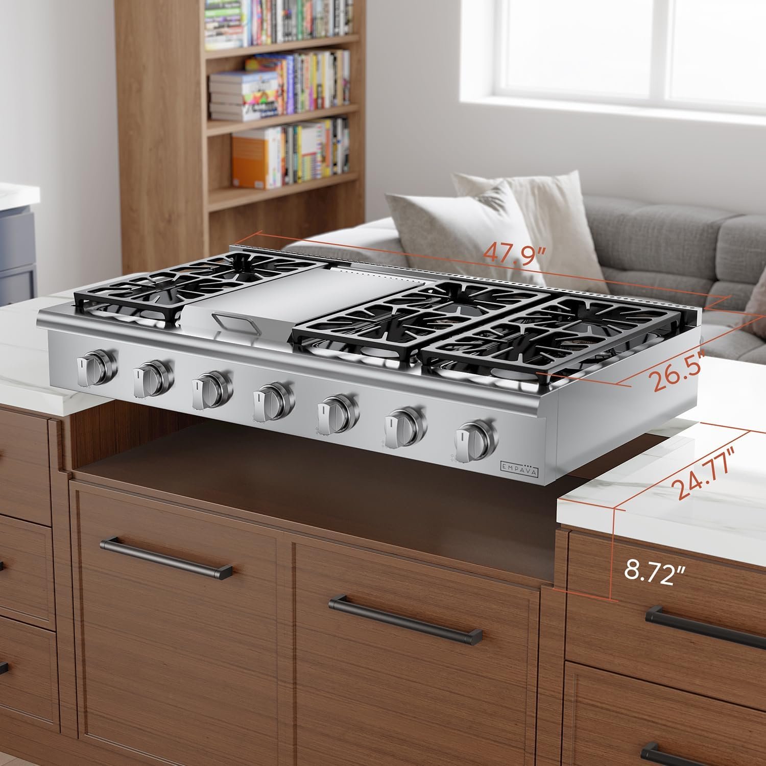 1 review for Empava 48 in. Pro-Style Professional Slide-in Natural Gas Rangetop with 6 Deep Recessed Sealed Ultra High-Low Burners-Heavy Duty Continuous Grates-Infrared Griddle in Stainless Steel, 48 Inch, Silver