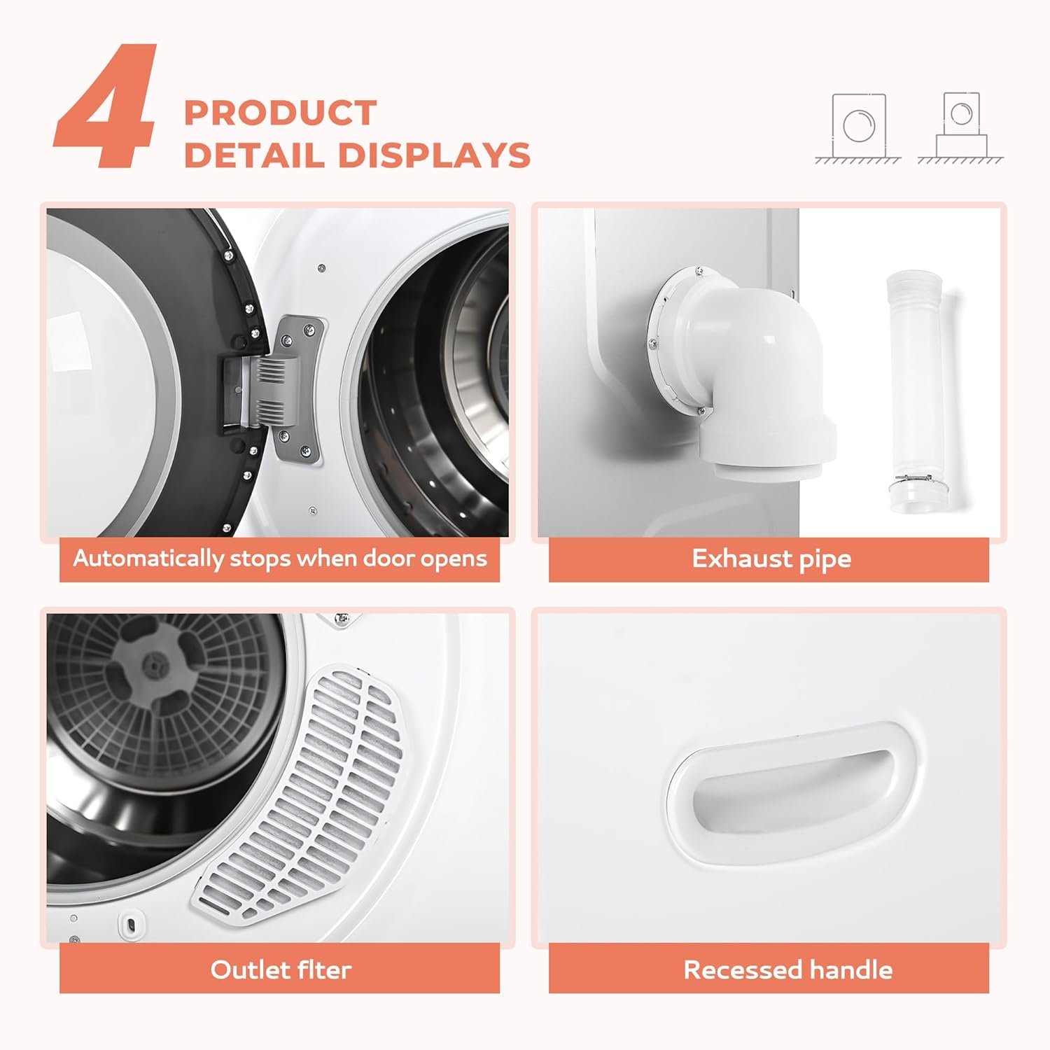 Euhomy clothes dryer has a wide-angle 105° door opening for easy insertion and removal of laundry. Cotton filter effectively filters lint and reduces lint and impurity buildup on your clothes. The handle makes it easy to move the unit to wherever you want it.