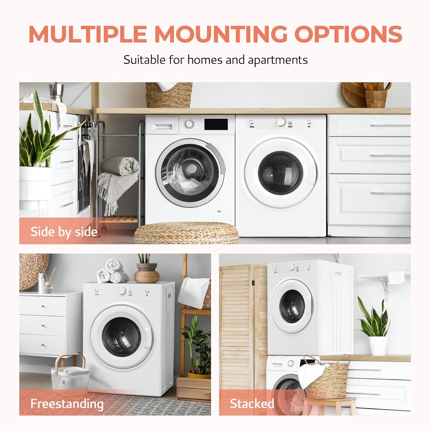 This portable dryer has a compact size with an exhaust hose and an adjustable base, perfect for homes, apartments, etc. He can be mounted on countertops, solid flat floors, or bracketed (bracket not included).ETL certification guarantees the safety and quality of our products.