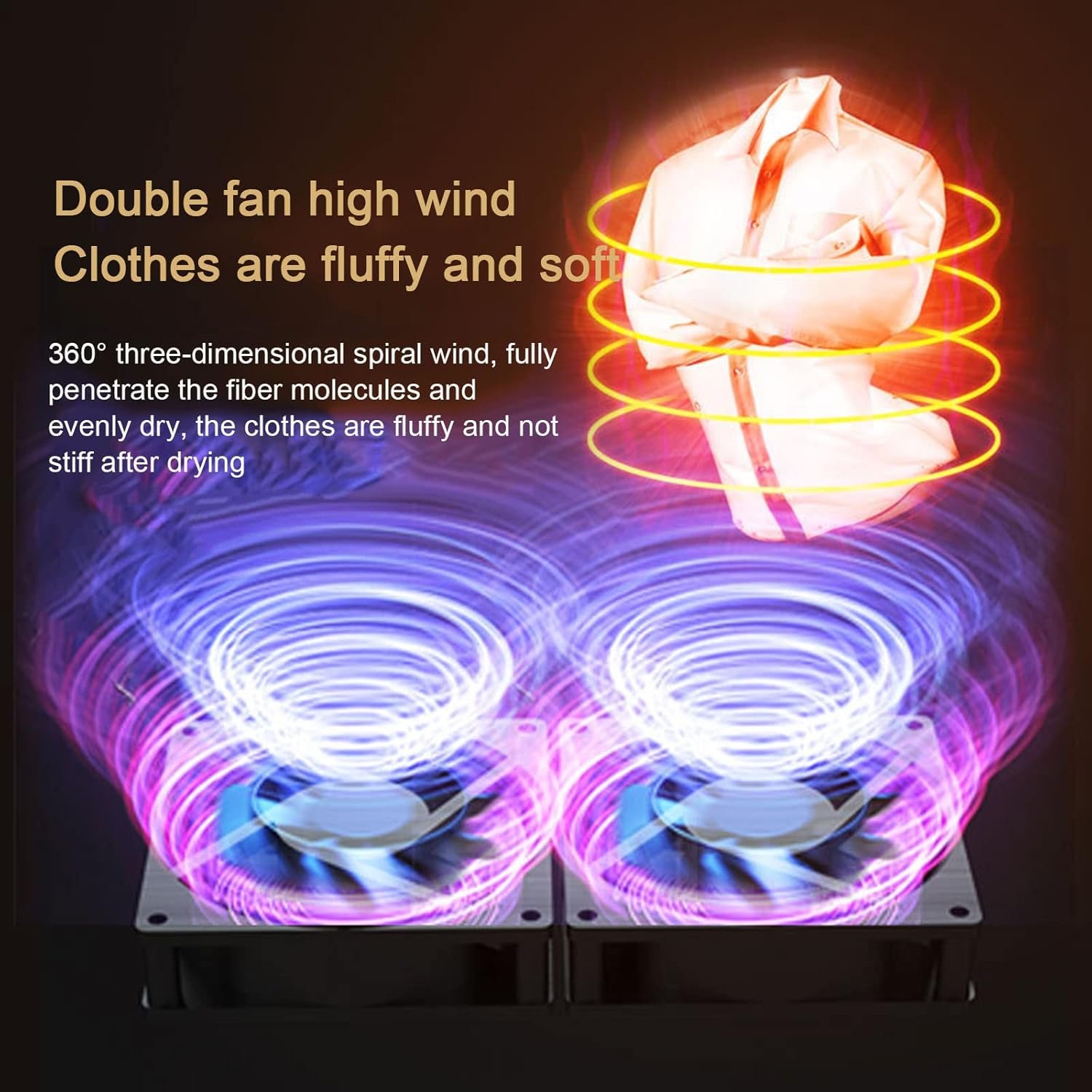 ✅[WHY CHOOSE US?]-Our clothes dryer can make your clothes wrinkle-free, so you need not to take much time to iron them. This dryer machine dry your clothes by wind and temperature, and there are 5 gears, high-speed, low-speed and breeze. Both high and low-speed’s temperature rang are from 37℃to 75℃, breeze gear is room temperature, to choose different wind and temperature gear according to your different clothes.
