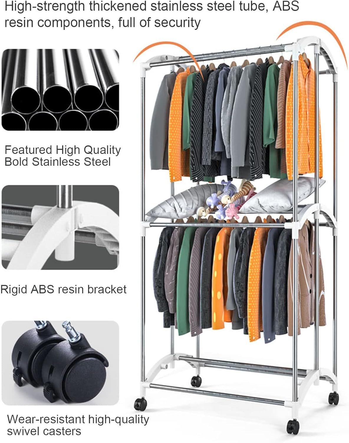 1. Widening and heightening the 2-layer dual-host clothes drying rack to quickly restore the fluffy and supple feeling of clothes, making it more comfortable to wear