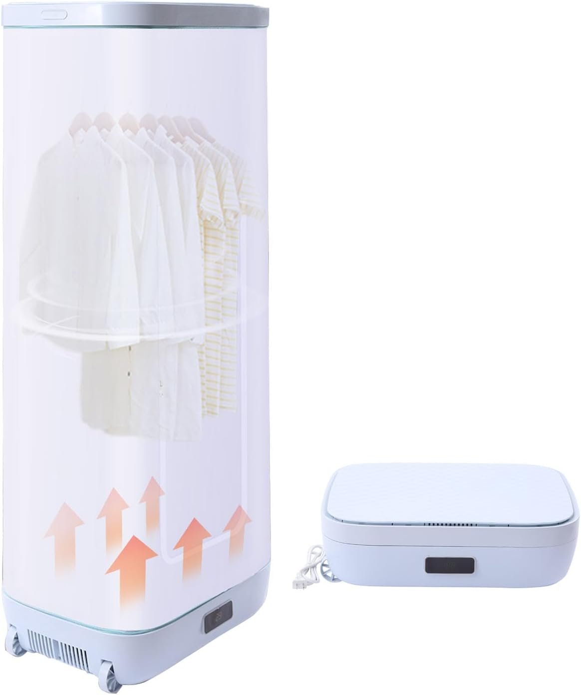 🧚‍♀️【Full Drying】- Rated at 850W, the drying temperature is 68°C/154.4°F, 360° circulating heat flow ensures that your clothes are dried quickly, the touch screen lets you adjust the drying time from 0-180 minutes, and there are air vents on the side of the bottom cover, so you can dry with peace of mind even if your clothes are still dripping.