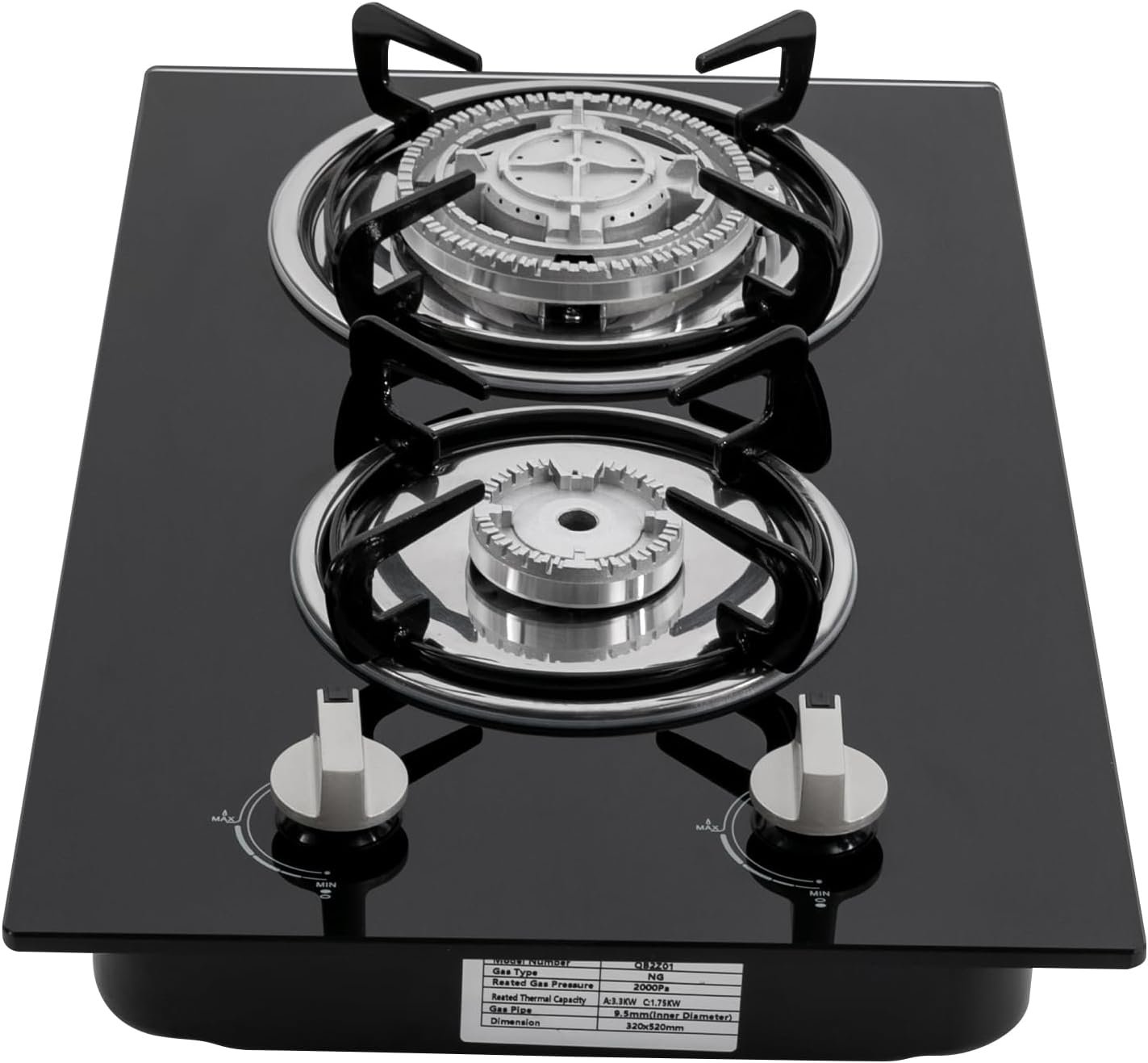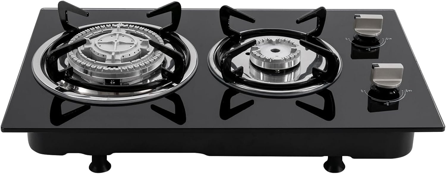 【High Efficiency】Featuring maximum outputs of 10,236 BTUs and 5,971 BTUs, rated thermal capacity of 3.3KW and 1.75KW, this gas stove has strong firepower, allowing you to cook food quickly.