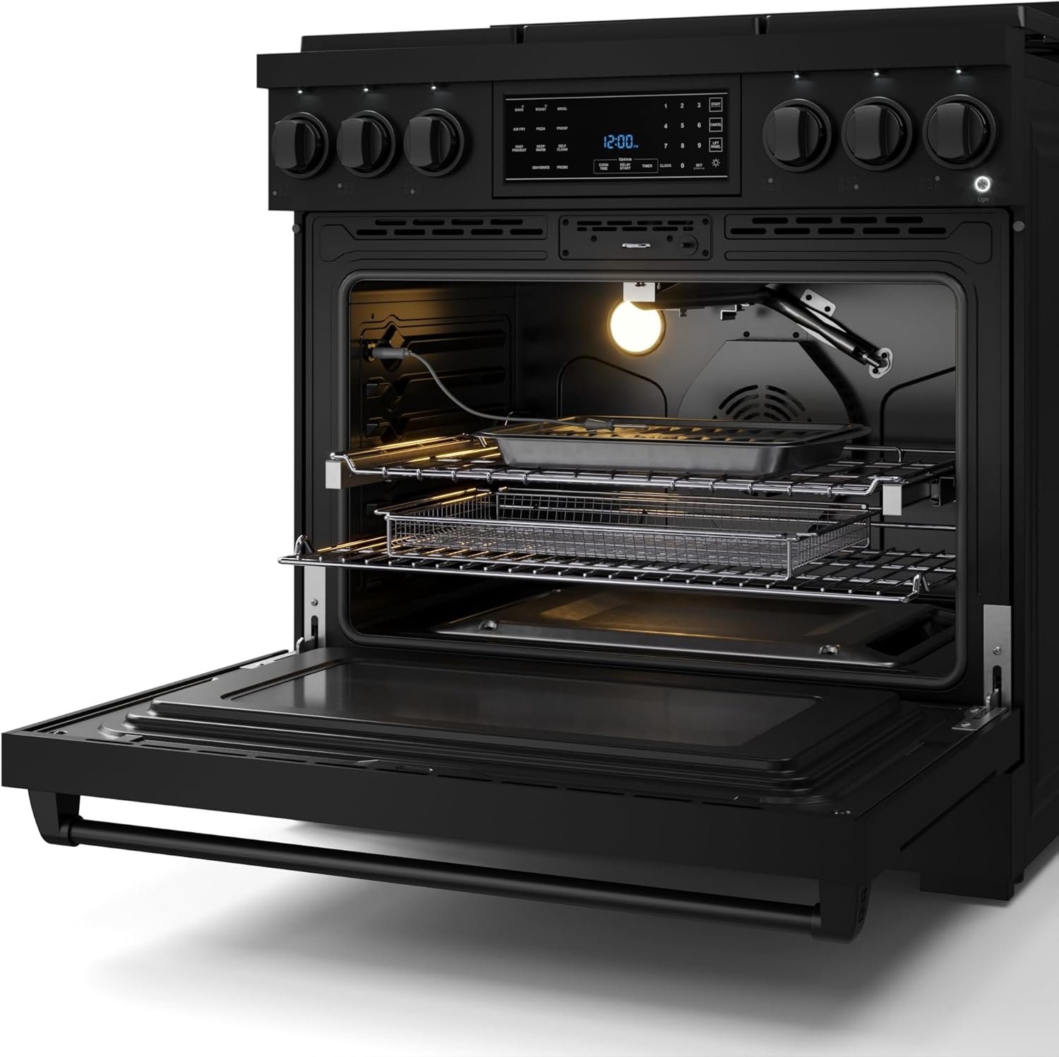 Designed for chefs who demand precision and power. With high-output burners, even heat distribution, and intuitive controls, this 36 Inch Gas range in Black elevates your cooking experience. Built for durability and performance, it brings restaurant-grade quality to your home kitchen, making every meal exceptional.