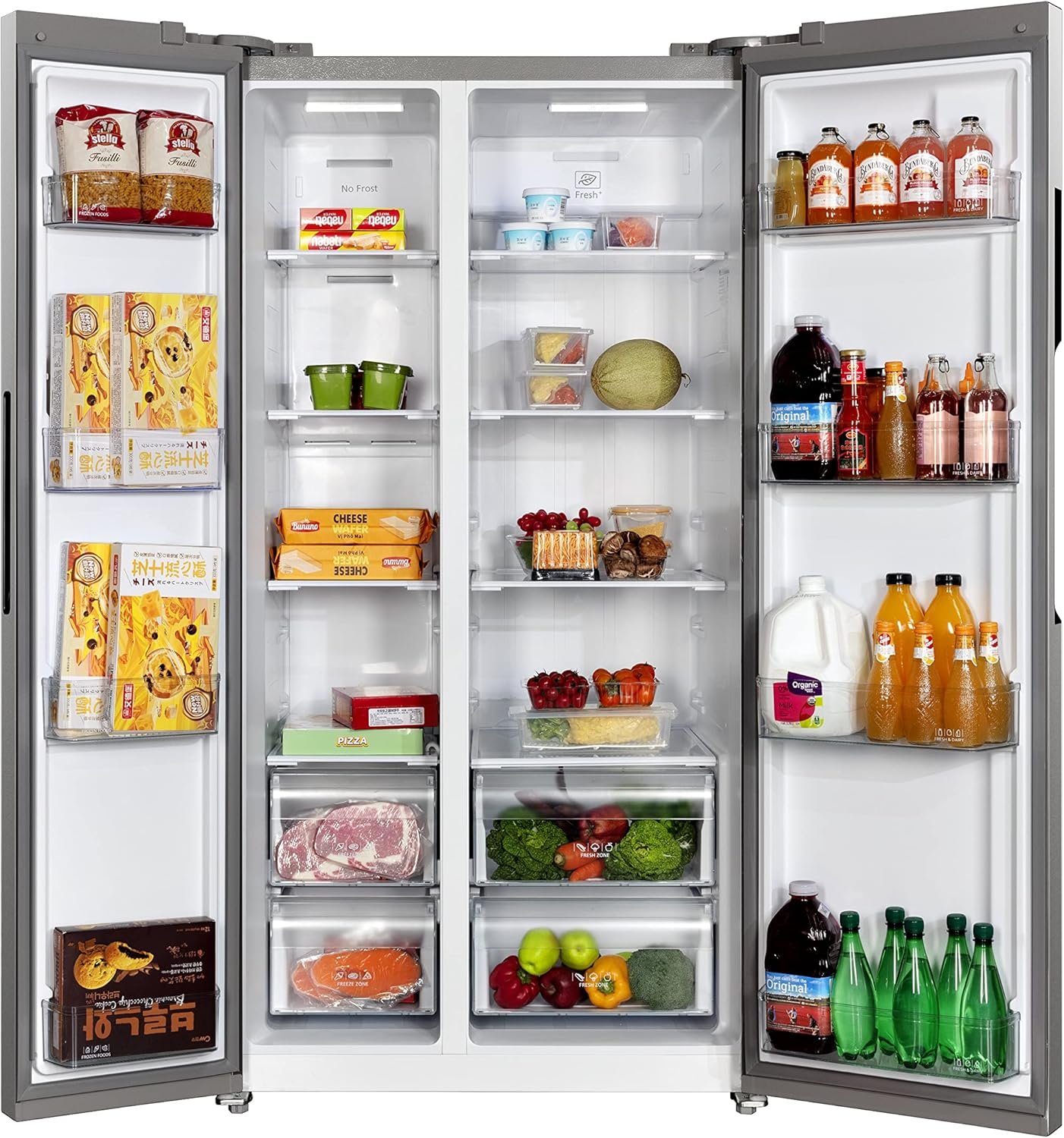 SIDE-BY-SIDE DOOR DESIGN: Allows you to organize and store your fresh and frozen foods to easily find what you need.