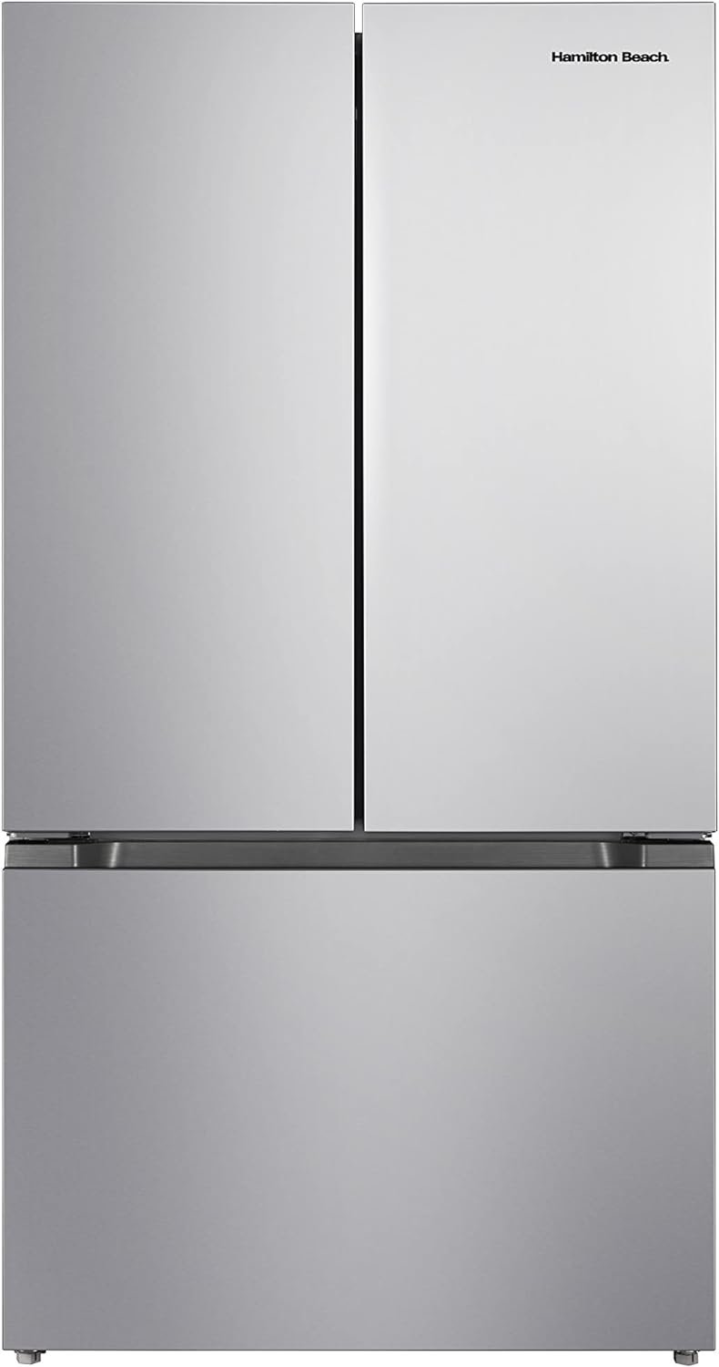 Our modern Refrigerator has a 2 French doors configuration with a refrigerator compartment on top and a freezer with a 2 doors compartment at the bottom. Featuring an adjustable thermostat, a built in lamp, slide out shelves and adjustable feet, This CFC free unit will allow you to easily store your snacks and beverages to keep them fresh at all time.