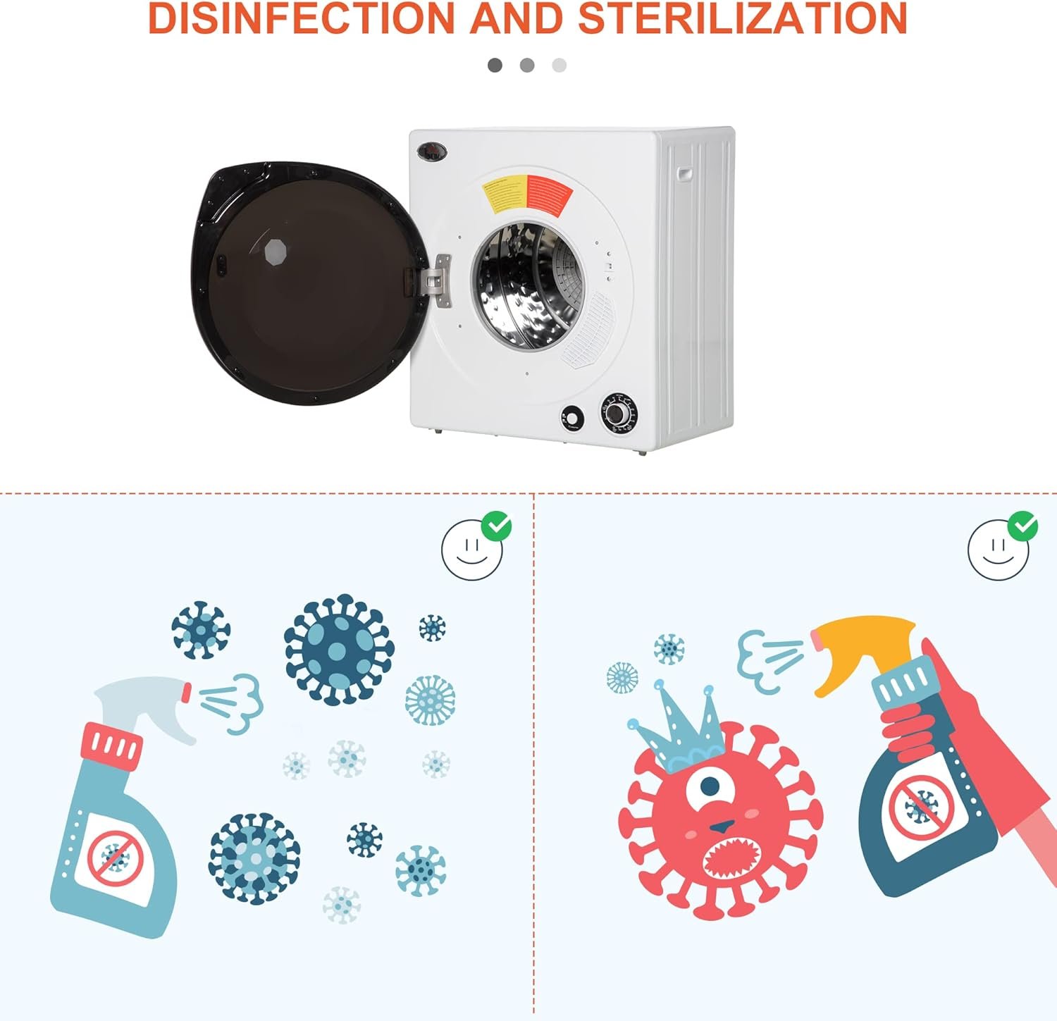 Safe, Safe, Safe: It will stop working when you open the door until you close it again. Adding or removing clothes halfway is convenient. And the steel frame of this clothes dryer prevents wear and bending, while the drum is made of stainless steel and is rust-resistant.