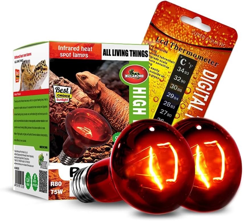 Mclanzoo reptile infrared heat lamp is perfect for the needs of reptiles and amphibians. And long life. Working hours up to 1000 hours