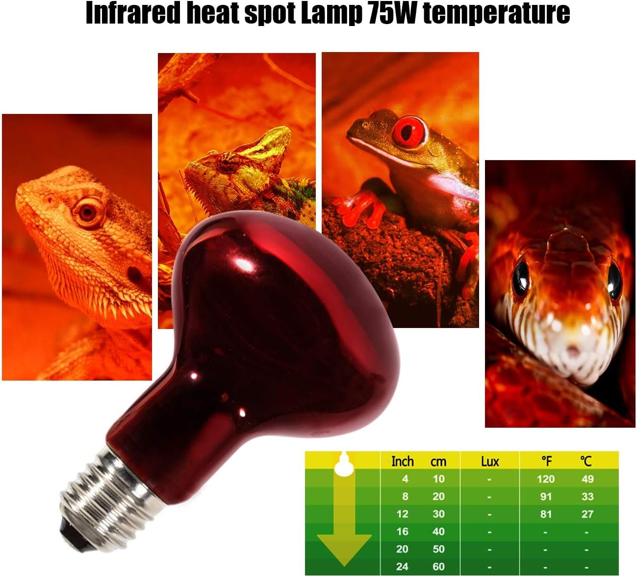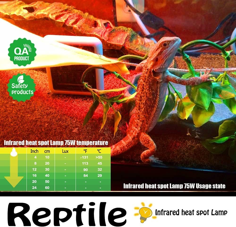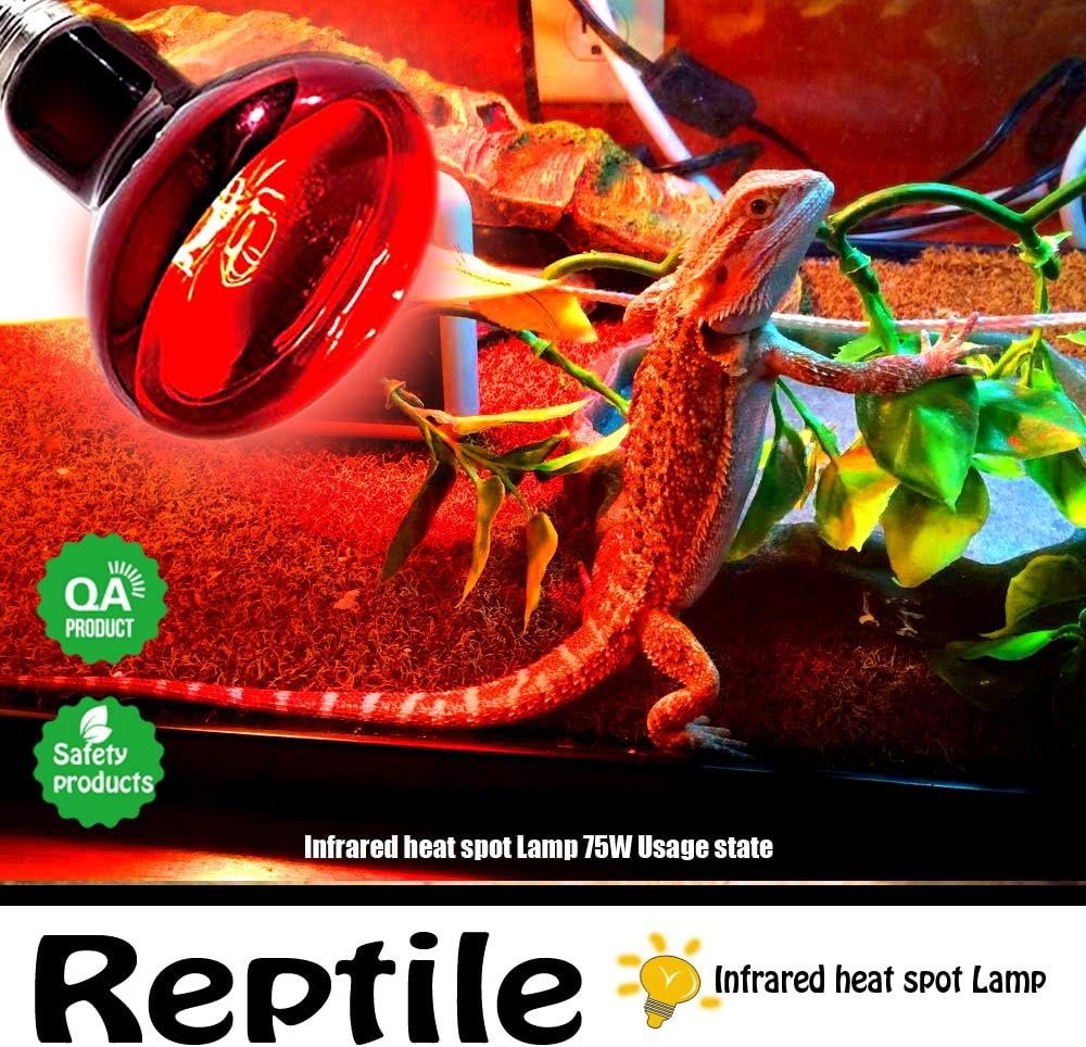 【Wide Application】: This infrared heat lamp is suitable for all reptiles and amphibians, include lizards, geckos, turtles, hedgehogs, hermit crabs, geckos, bearded dragons, snakes, frogs, toads, chameleons, chicken brooder, puppies, etc.