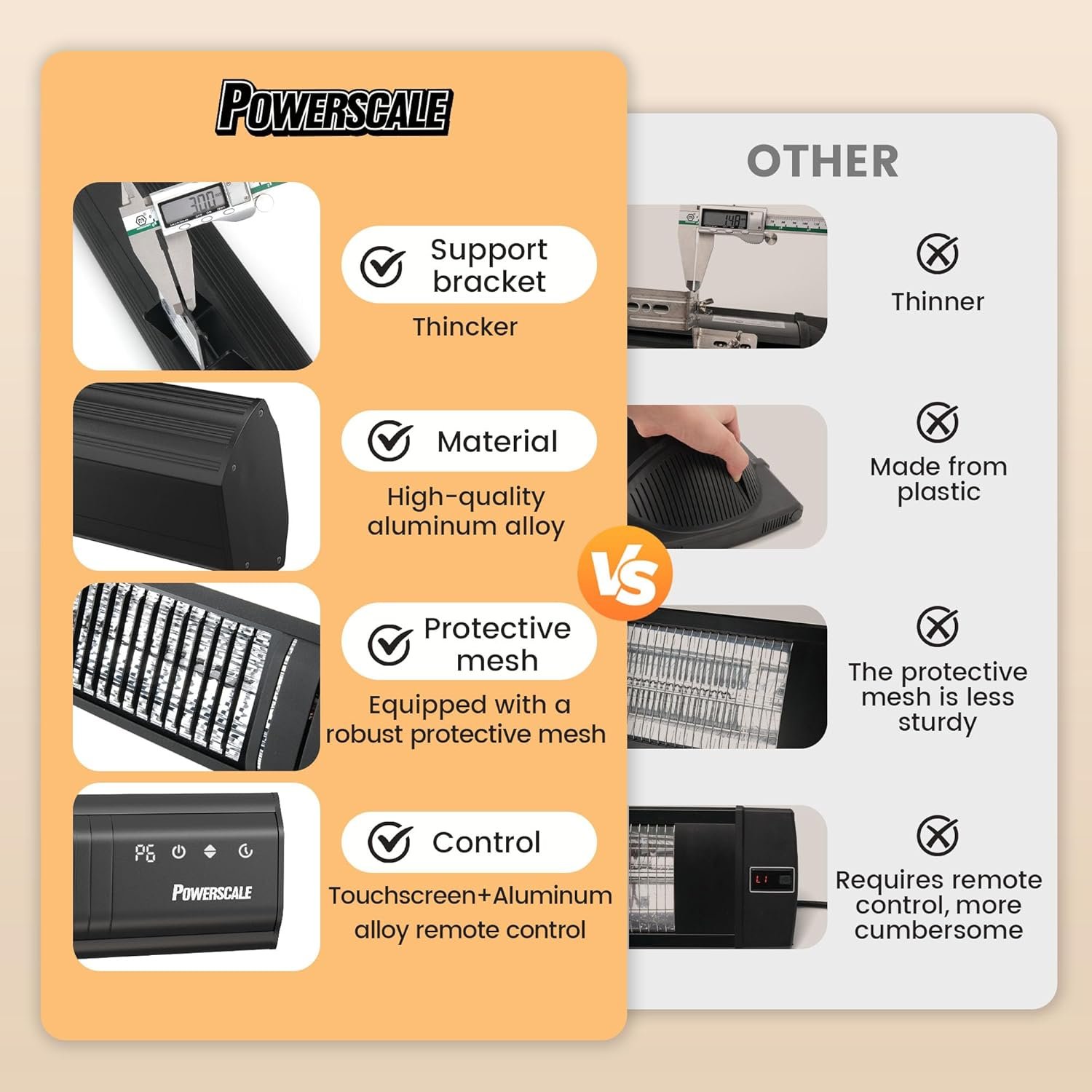 HIGH HEATING POWER AND SPEED: Experience powerful heating with 1500W capacity. outdoor heater heats up instantly within 2.5 seconds,the infrared outdoor electric Space Heater providing warmth up to 10 feet. Perfect for quick relief from the cold, ensuring your comfort in no time