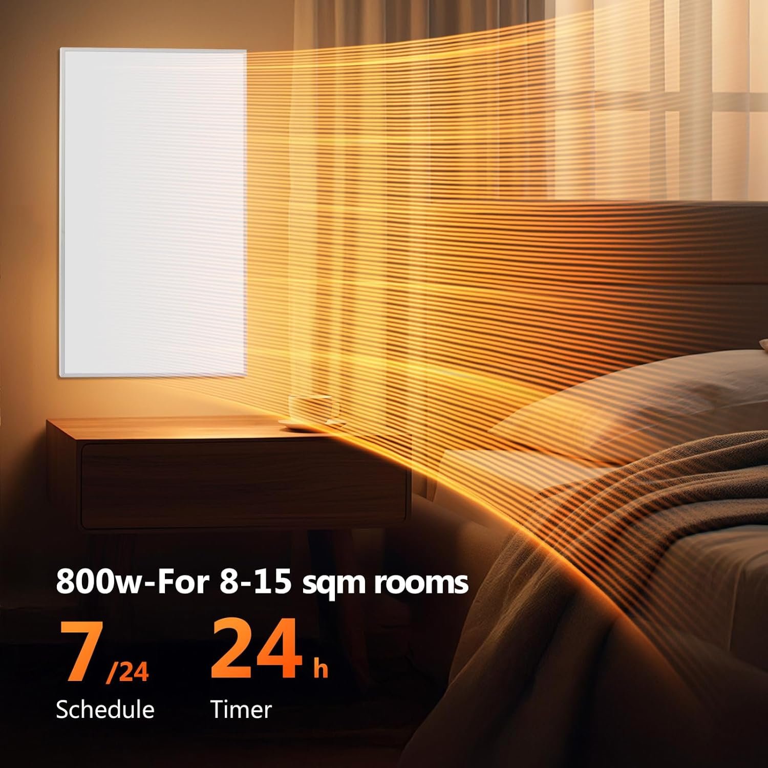 Quiet & Healthy Heating: Infrared heating minimizes air circulation, making it ideal for asthma and allergy sufferers, while operating silently for a peaceful environment; Perfect for installation in bedrooms, studies, and living rooms.