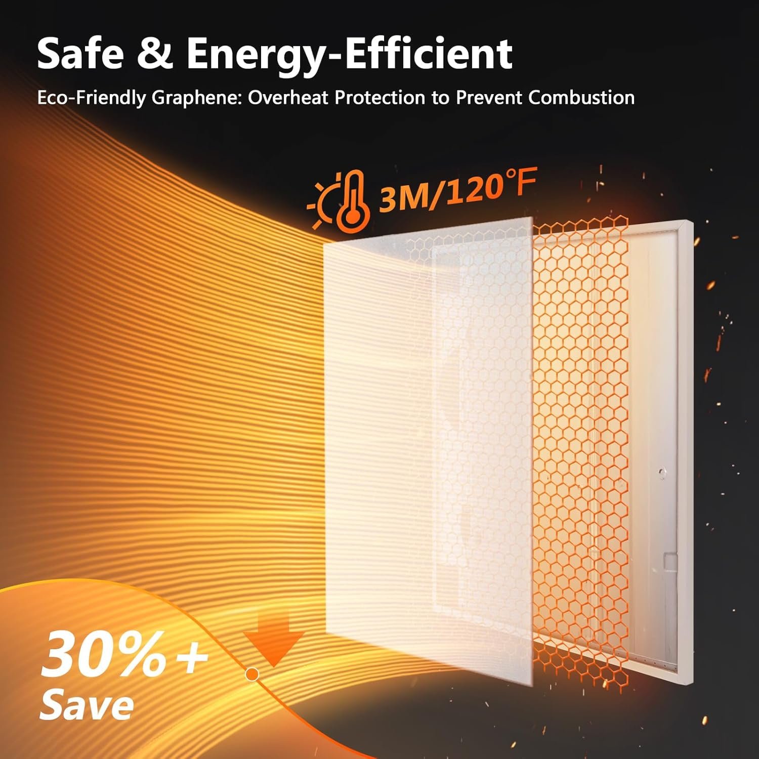 Energy Efficient: Featuring advanced graphene heating technology, this heater reduces power consumption while maximizing heat output; It quickly warms a room, reaching up to 248°F in just 3 minutes, perfect for spaces of 8-15 square meters