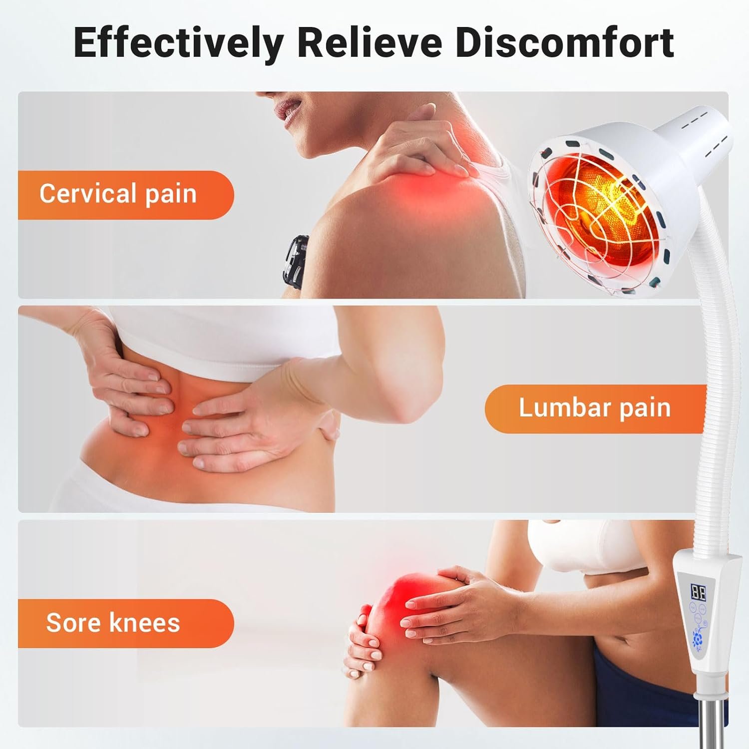 Infrarde Heat Lamp for Body:Infrared lamp therapy is suitable for athletes, and pain patients. 660nm red light increases cellular activity and 850nm NIR light reaches deeper into the body tissues.The infrared energy of the infrared therapy lamp penetrates deep into the skin, directly causing muscle heat effects, accelerating blood circulation, relieving pain, and promoting muscle relaxation.